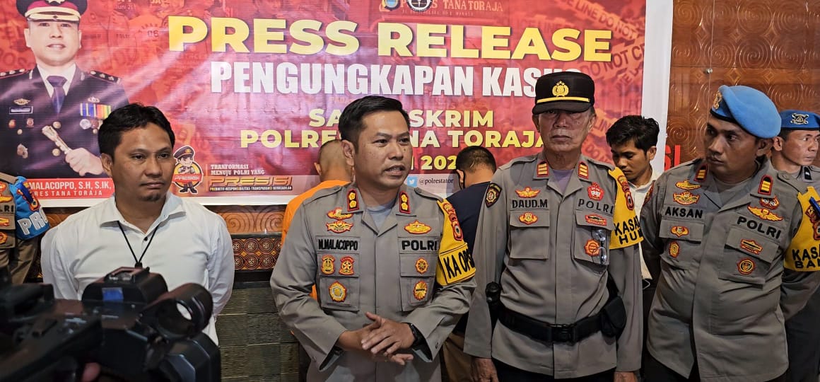Hari ini Kapolres Tana Toraja AKBP Malpa Malacoppo, didampingi Kasat Reskrim, Kasi Humas dan Kasi Propam menggelar Press Release di ruang loby Mapolres Tana Toraja, Sabtu (2/3/24)