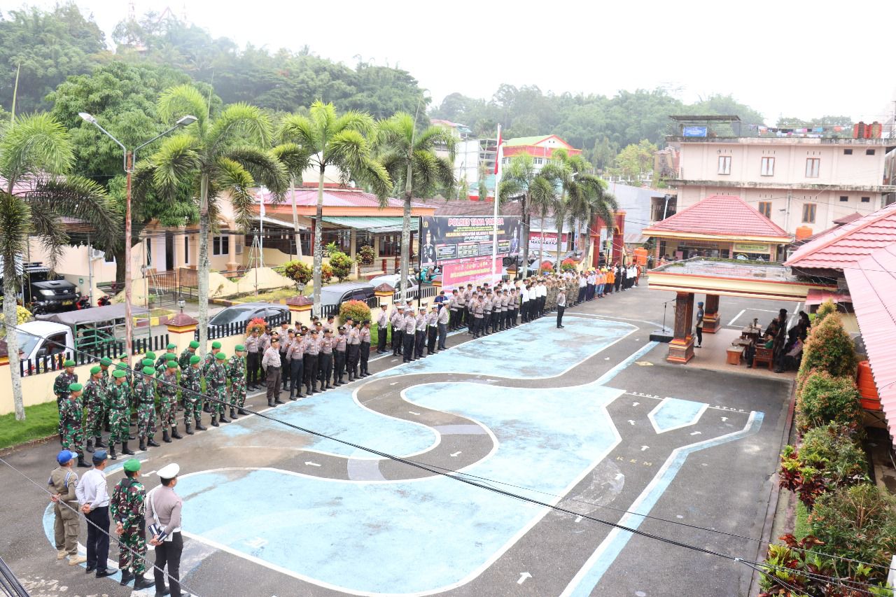 Kapolres Tana Toraja AKBP Malpa Malacoppo, membacakan amanat Kapolri Jenderal Polisi Drs. Listyo Sigit Prabowo, M.Si, menyatakan bentuk komitmen untuk memastikan kesiapan personil dan sarpras, serta memperkuat sinergitas dengan stakeholder terkait sehingga operasi Ketupat 2025 dalam rangka pengamanan mudik serta perayaan hari raya Idul Fitri 1446 H dapat berjalan aman, tertib dan lancar.