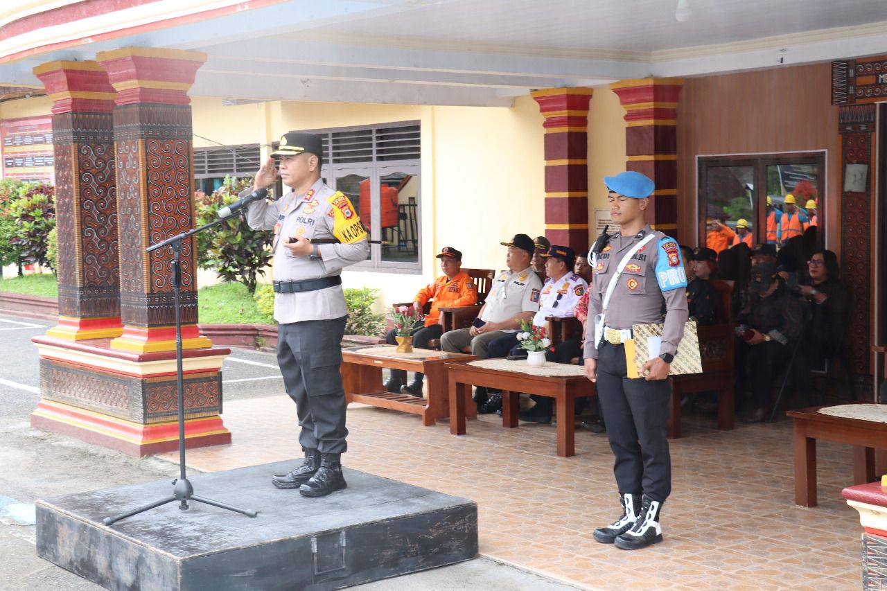Kapolres Tana Toraja AKBP Malpa Malacoppo, membacakan amanat Kapolri Jenderal Polisi Drs. Listyo Sigit Prabowo, M.Si, menyatakan bentuk komitmen untuk memastikan kesiapan personil dan sarpras, serta memperkuat sinergitas dengan stakeholder terkait sehingga operasi Ketupat 2025 dalam rangka pengamanan mudik serta perayaan hari raya Idul Fitri 1446 H dapat berjalan aman, tertib dan lancar.