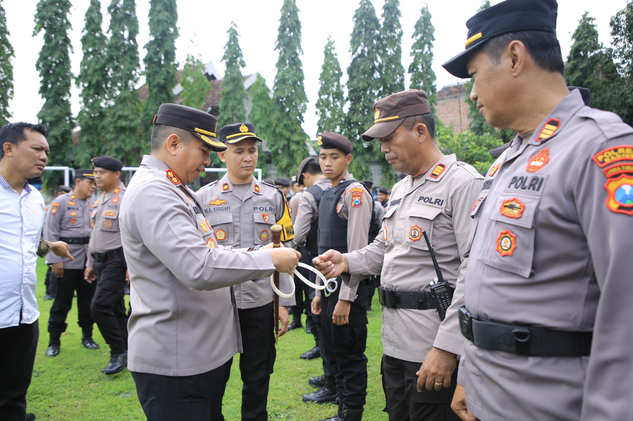 “Kami lakukan pengecekan terhadap sikap tampang anggota serta perlengkapan yang wajib dibawa saat pelaksanaan TPS, diantaranya seperti buku saku Pam TPS, ban lengan petugas pam TPS, tongkat T, borgol, senter, jas hujan, dan perlengkapan pribadi anggota, hal ini bertujuan untuk memastikan anggota sesalu siap saat pengamanan di lokasi TPS masing-masing, ” jelasnya.