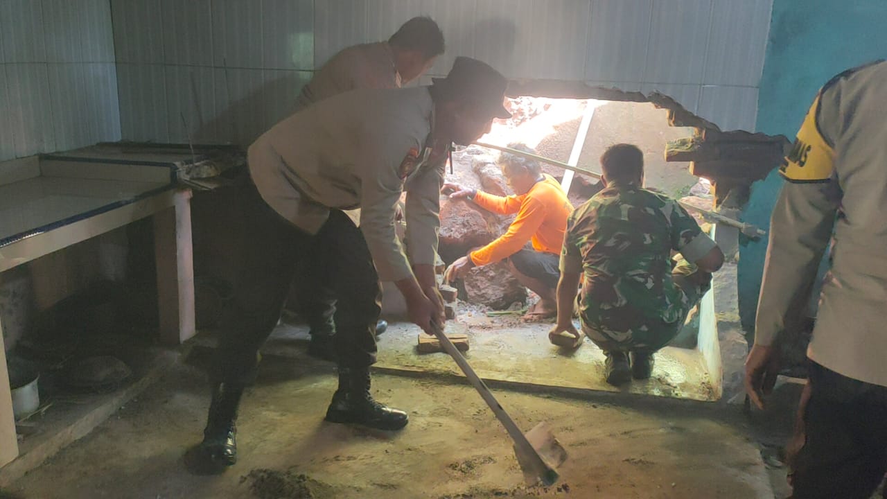 Perlu diketahui, dinding rumah Buniran tersebut rusak atau jebol akibat longsor dan kejatuhan batu besar saat hujan deras yang terjadi pada Sabtu (16/3/2024) sekira pukul 15.00 WIB