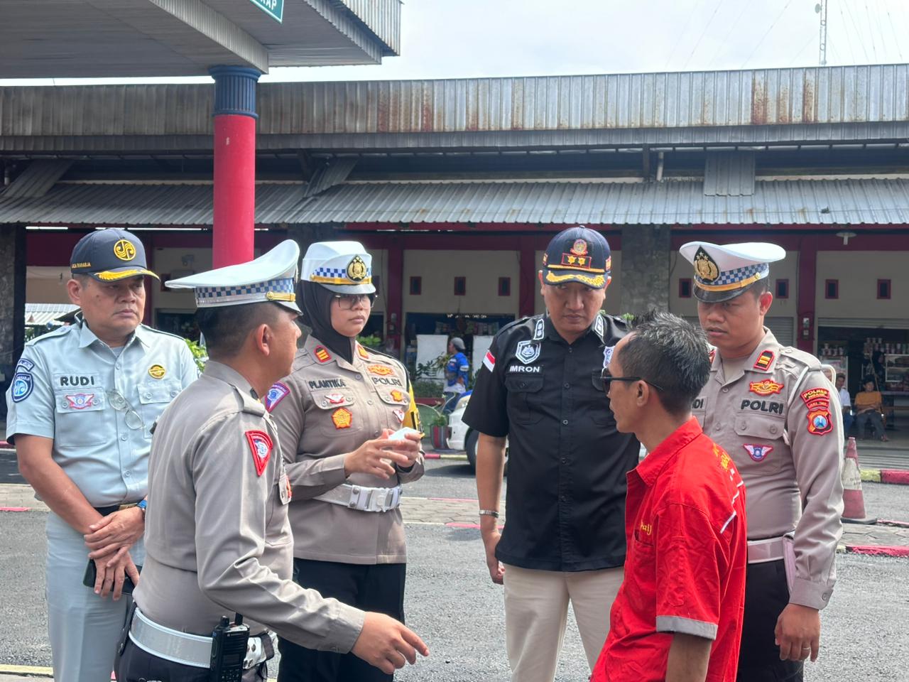 Tak lupa, Kasat Lantas Polres Ngawi AKP Plantika, bersama anggotanya juga memberikan imbauan tentang keselamatan berlalu lintas kepada para awak bus dan para penumpang.
