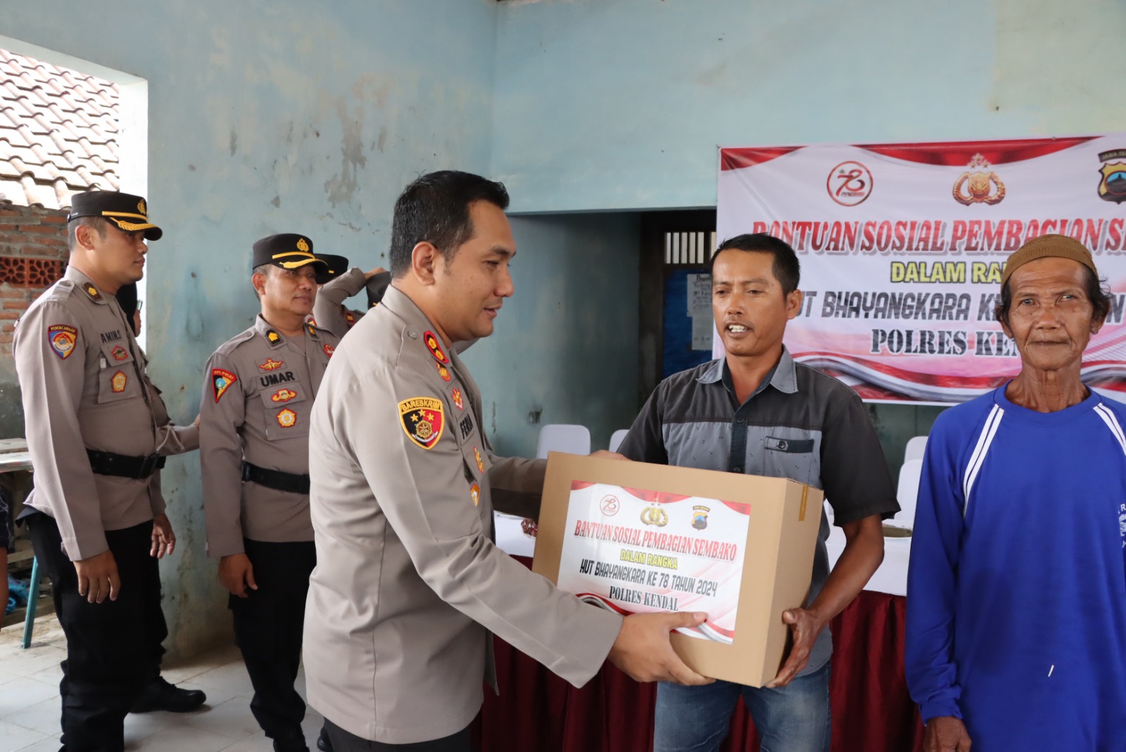 Menjelang HUT Bhayangkara ke-78 Polres Kendal menggelar bakti sosial, dengan memberikan bantuan air bersih serta sembako di Kelurahan Karangsari Kecamatan Kendal, Minggu (23/6/2024).