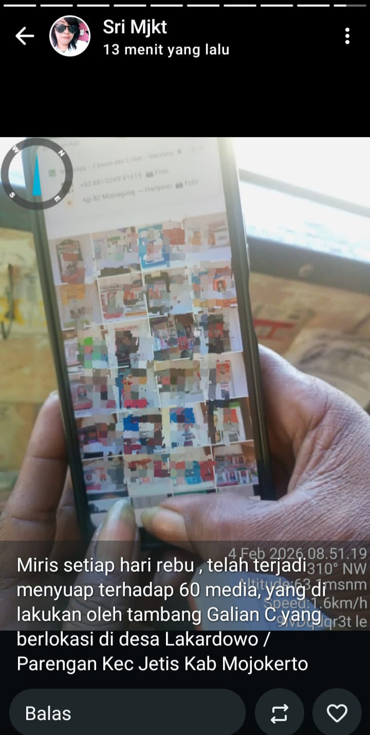 Dalam unggahan tersebut, ia menuliskan bahwa “setiap hari Rabu sebanyak 60 media menerima suap dari salah satu pertambangan galian C di Kecamatan Jetis, Mojokerto.” Pernyataan tersebut dinilai terlalu generalisasi, tanpa bukti yang jelas, dan berpotensi menjatuhkan martabat serta kredibilitas insan pers secara luas.