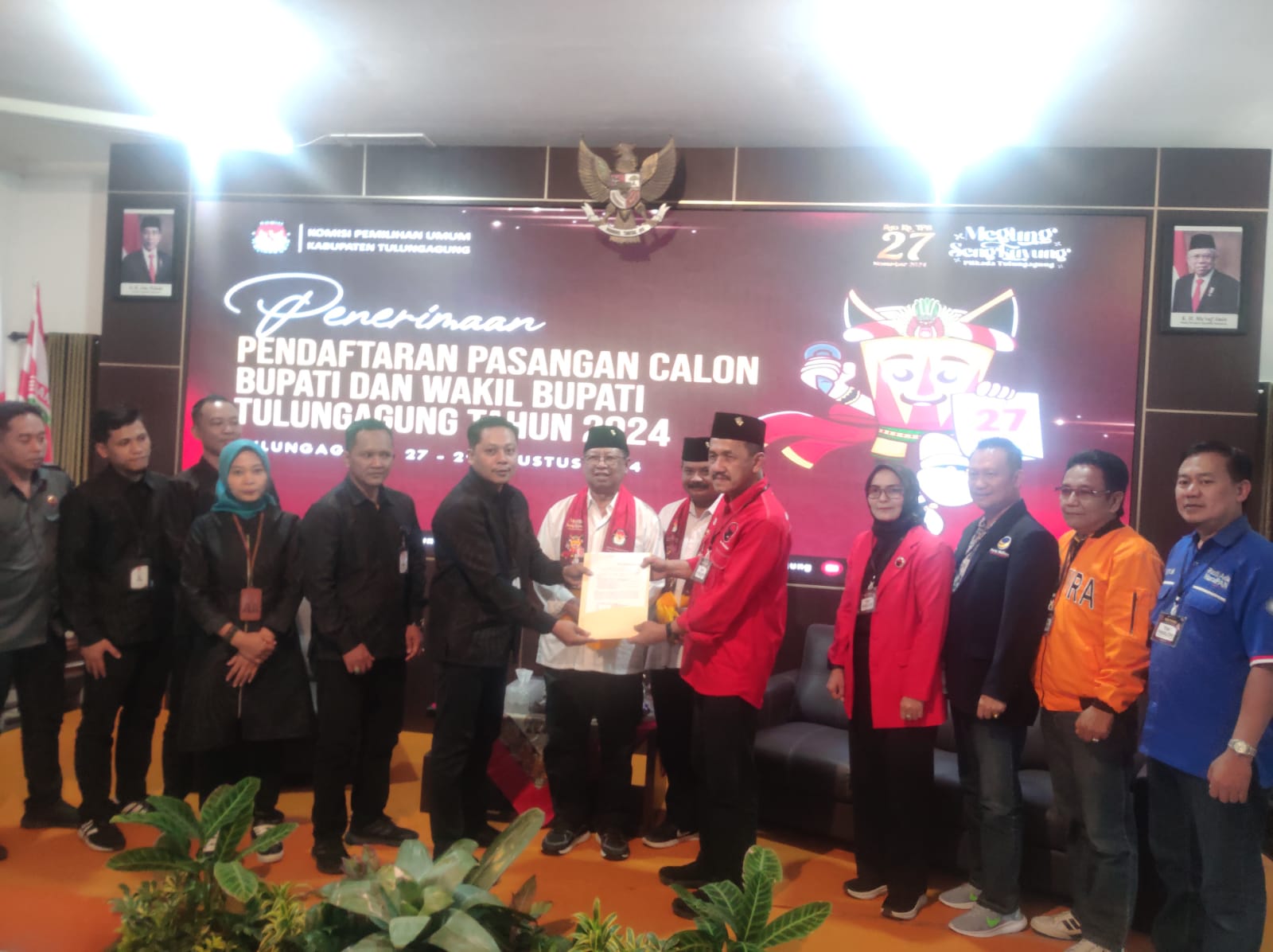 Sementara, Moh Lutfi Burhani, Ketua KPU Tulungagung mengkonfirmasi, pendaftaran pasangan Maryoto Birowo dan Didik Girnoto Yekti sebagai calon Bupati dan Wakil Bupati Tulungagung periode 2024 -2029, yang diusung oleh empat partai politik, yaitu PDI Perjuangan, Hanura, Partai PAN, dan Partai Nasdem.”Total perolehan suara dari keempat partai tersebut mencapai 44,6% atau sekitar 296.914 suara sah,” tandasnya.