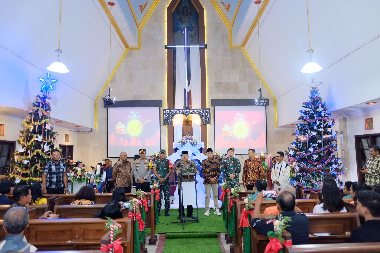 “Personil Gabungan TNI, Polri, Pemerintah Kota Blitar dan elemen terkait saling mendukung untuk menjaga keamanan tujuannya untuk menciptakan rasa aman dan nyaman di Kota Blitar, Kami ucapkan Selamat Hari Natal 2023 bagi umat kristiani Semoga Tuhan memberkati ” tegasnya.