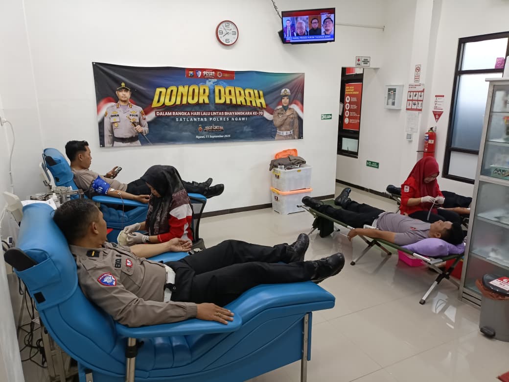 Dalam rangka memperingati Hari Keselamatan serta HUT Lalu Lintas Bhayangkara ke-70 tahun 2025, Satlantas Polres Ngawi menggelar kegiatan donor darah, bertempat di kantor PMI Ngawi