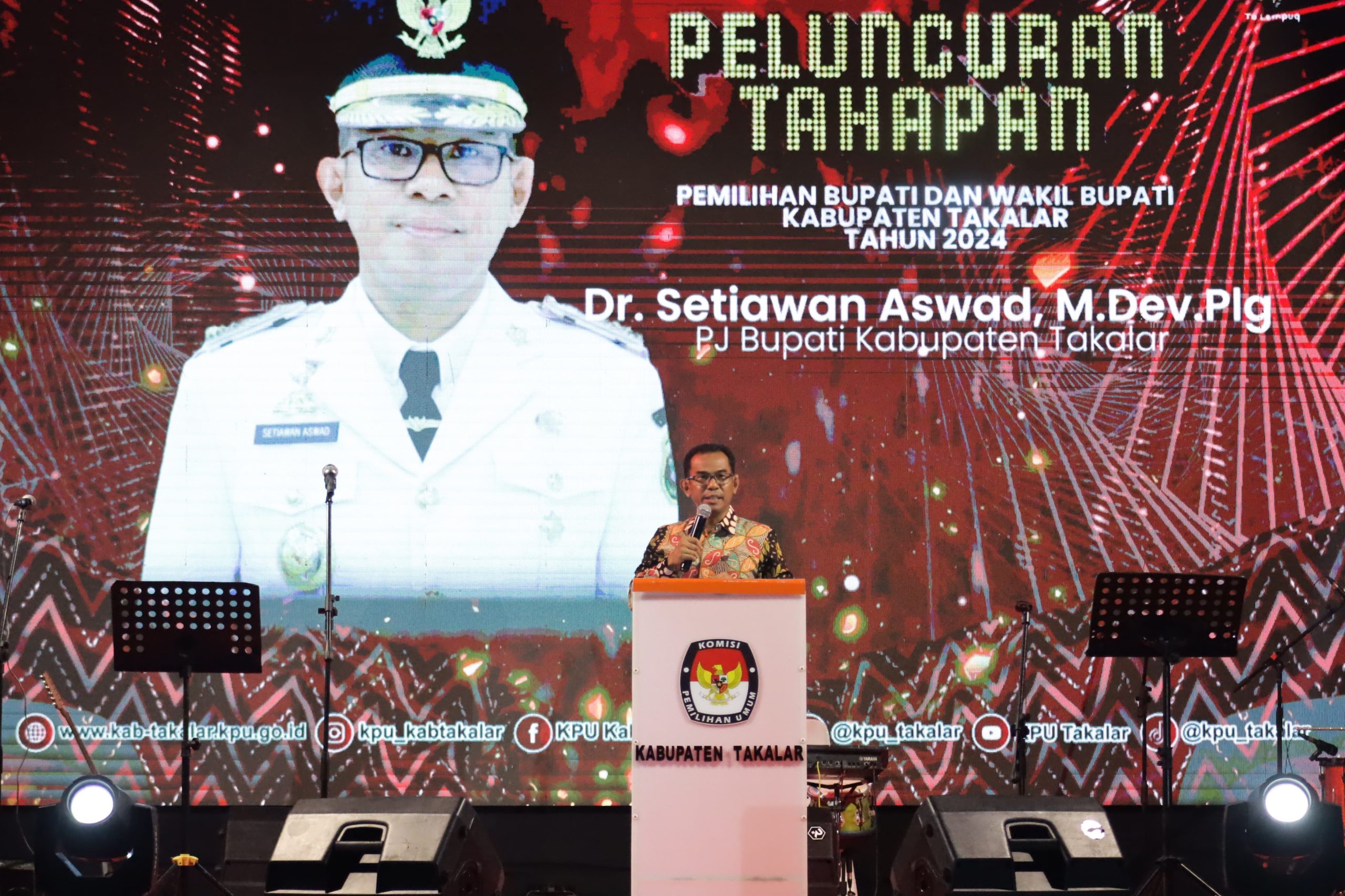 Pj Bupati Takalar Dr. Setiawan Aswad, M.Dev.,Plg, Hadir di peluncuran tahapan Pemilihan Bupati dan Wakil Bupati Kabupaten Takalar Tahun 2024 di Lapangan H. Makkatang Dg Sibali Takalar 21 Juni 2024 (Malam)