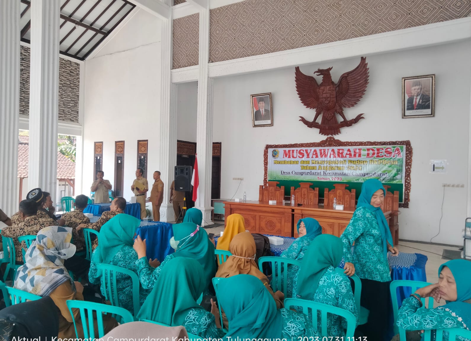 Hadir dalam kegiatan tersebut, yakni kepala desa Campurdarat dan seluruh perangkat desa, Camat Campurdarat, BPD beserta anggota, TP PKK, Pendamping desa, LPM, Karang Taruna, ketua RT/RW, Babinsa, Bhabinkamtibmas, tokoh masyarakat dan undangan lainya.