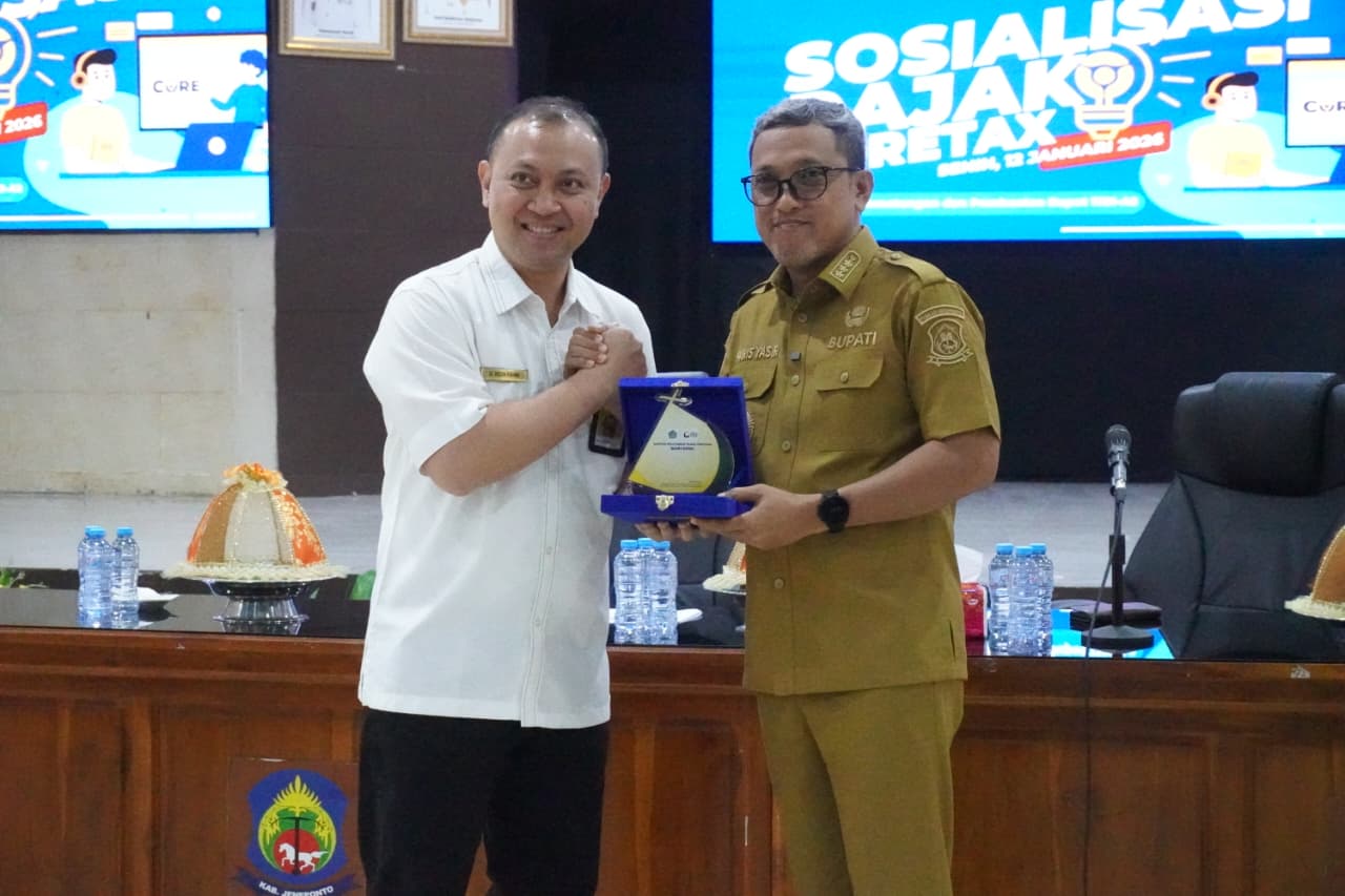 Kegiatan diakhiri dengan penyerahan cendera mata dari Kepala KPP Pratama Bantaeng kepada Bupati Jeneponto sebagai bentuk apresiasi dan penguatan sinergi kelembagaan, serta dilanjutkan dengan foto bersama