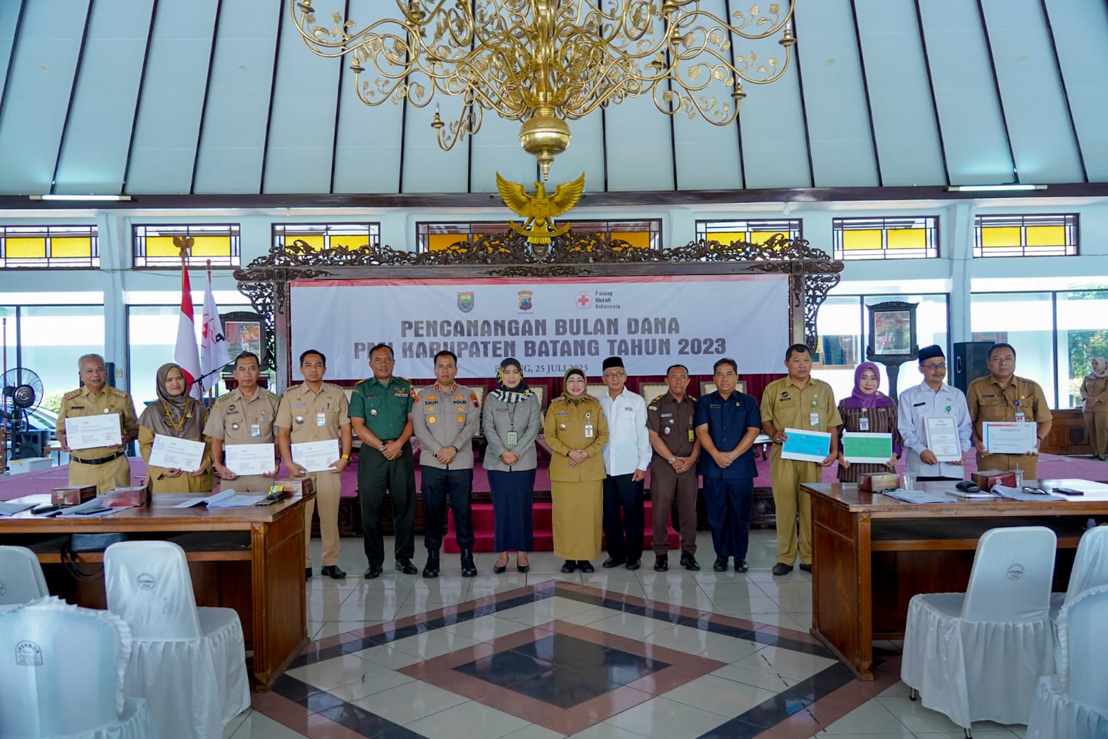 BATANG PB – Palang Merah Indonesia (PMI) Kabupaten Batang menyelenggarakan gerakan Pencanangan Bulan Dana kemanusiaanTahun 2023 bertempat di Pendopo Kabupaten Batang, Selasa (25/7/2023).