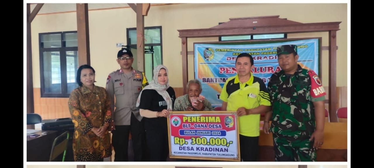 Pemerintah Desa (Pemdes) Kradinan, Kecamatan Pagerwojo, Kabupaten Tulungagung, salurkan Bantuan Langsung Tunai Dana Desa (BLT-DD) Tahun 2024 pada 25 Keluarga Penerima Manfaat (KPM) di Balai Desa setempat pada Jumat (26/01/2024).