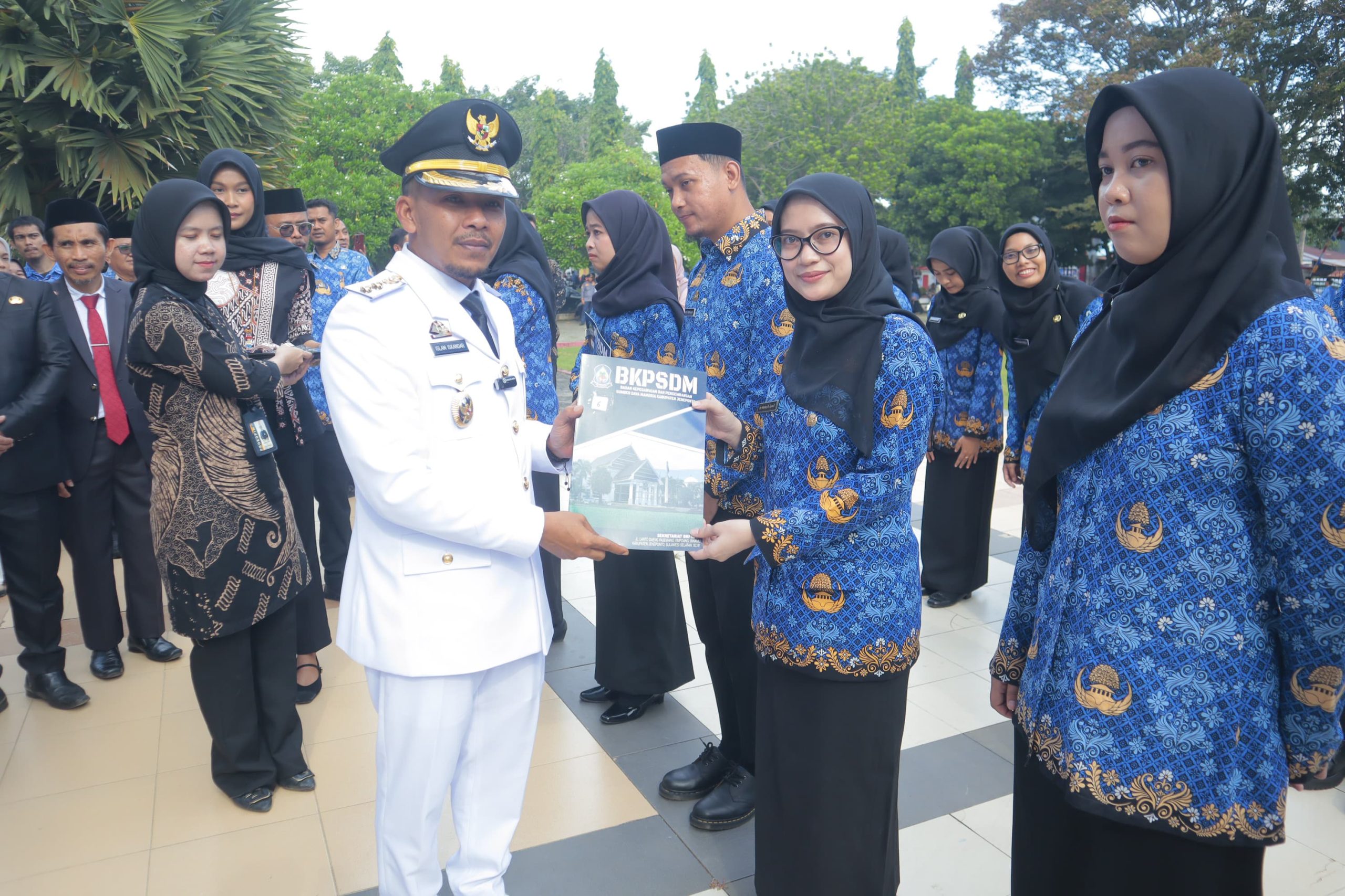 Pada kesempatan yang sama, Bupati Jeneponto H. Paris Yasir, S.E., M.M., turut hadir dan secara langsung menyerahkan Surat Keputusan Pengangkatan kepada para CPNS formasi tahun 2024. Penyerahan ini menandai dimulainya perjalanan para abdi negara baru dalam mendukung roda pemerintahan dan pelayanan publik di Kabupaten Jeneponto.