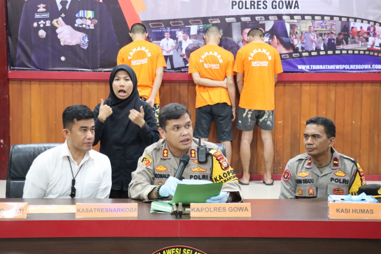 Hal tersebut diungkapkan langsung oleh Kapolres Gowa AKBP R.T.S Simanjuntak, S.H., S.I.K., M.M., M.I.K didampingi Kasat Narkoba Polres Gowa Iptu Syarifuddin, Plt Kasi Humas IPDA Udin Sibadu menggelar Press Release di Aula Endra Dharmalaksa Polres Gowa, Senin (5/2).