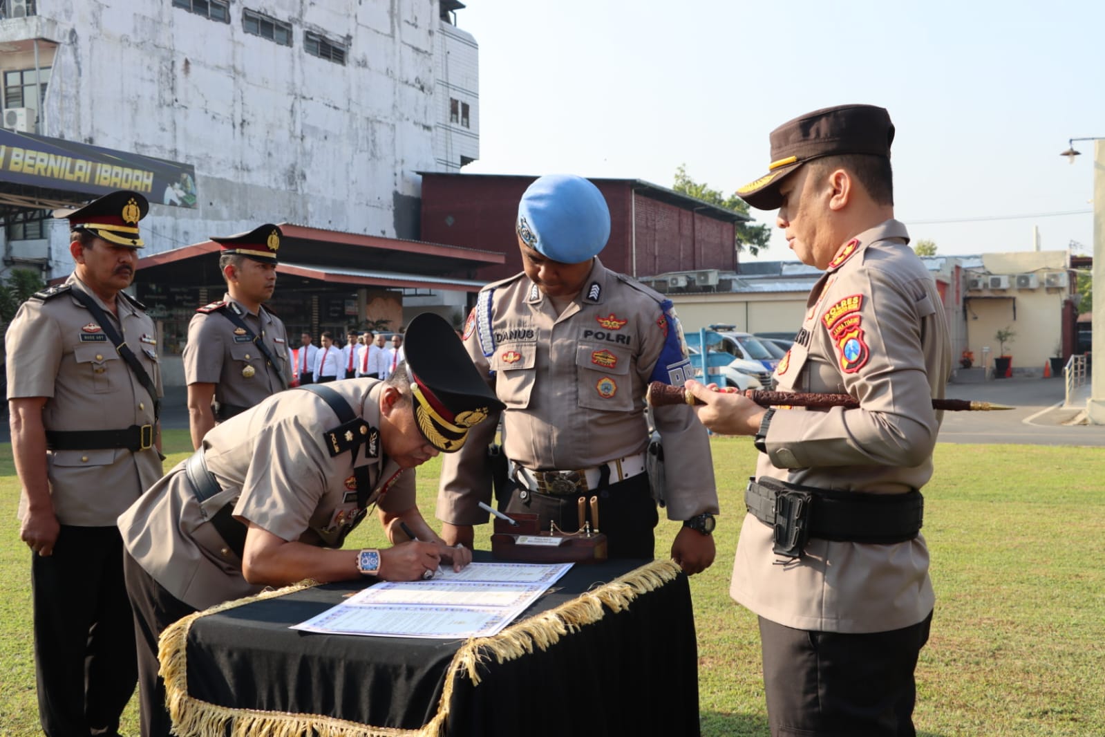 Upacara sertijab yang dipimpin langsung Kapolresta Mojokerto AKBP Wiwit Adisatria S.H., S.I.K., M.T, didampingi Wakapolresta Mojokerto KOMPOL Yuli Candra Dewi, Pejabat Utama serta Kapolsek jajaran dengan peserta Upacara Personel dan ASN Polri