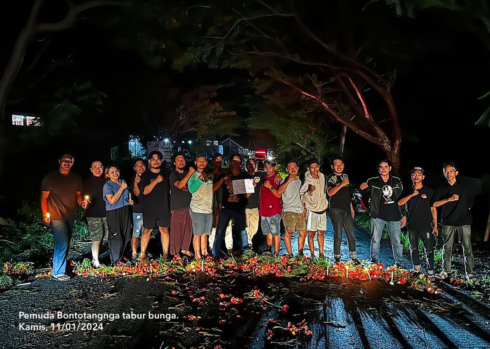 Lanjut Subair Ta,le menjelaskan, Pohon Flamboyan itu Tumbuh subur tak jauh dari makam Keluarga Djalle, pemangkasan dilakukan pada pukul 17.00 oleh enam petugas lapangan. Tidak ada konfirmasi sebelumnya ke warga setempat. Subair Sirua, tokoh pemuda sekaligus penanam flamboyan bergegas ke lokasi, namun terlambat. Bunga merah Flamboyan sudah pindah, berserakan di tanah dan jalan raya. Para pemuda Bontotangnga berdatangan ke lokasi. Tak sedikit dari mereka yang meneteskan air mata. Tak beranjak dari lokasi hingga larut malam, mereka melakukan tabur bunga di tengah poros jalan “memperingati kebodohan sekaligus kematian nurani, etika dan estetika pemerintah” setempat. Mereka bersumpah dan berseru untuk tidak memilih seorang caleg DPR-RI yang terpasang di baliho tersebut.