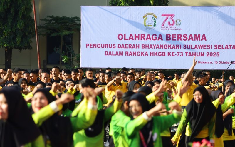 Makassar, Pilarbangsa.co.id. Dalam rangka memperingati Hari Kesatuan Gerak Bhayangkari (HKGB) ke-73 Tahun 2025, Bhayangkari Daerah Sulawesi Selatan bersama Bhayangkari Cabang menggelar kegiatan olahraga bersama yang berlangsung di Lapangan Apel Belakang Mapolda Sulsel, Jumat (10/10/25).
