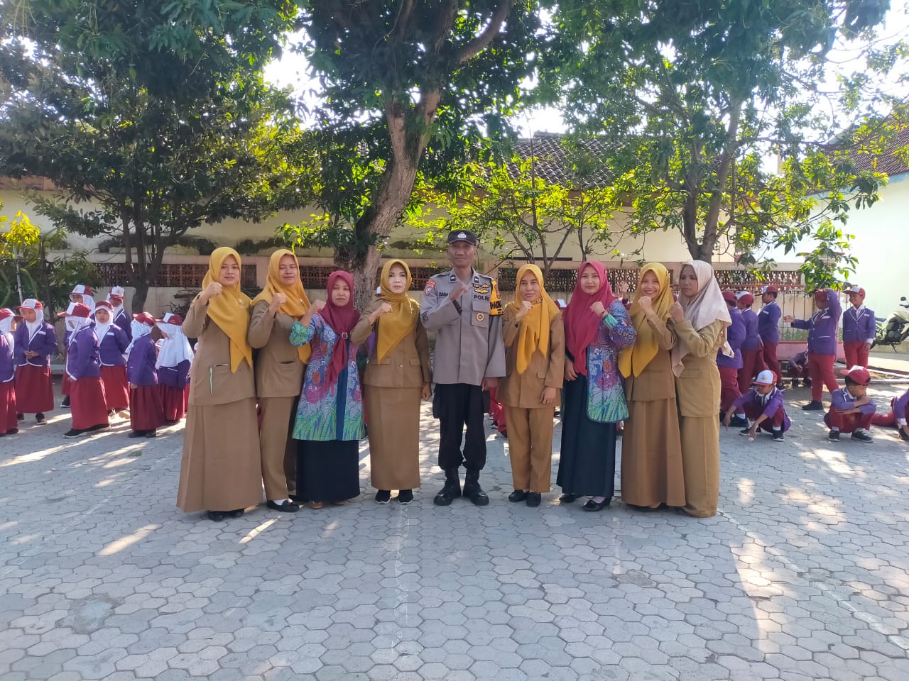 Polres Ngawi Polda Jatim melalui Unit Binmas Polsek Kendal melaksanakan program Police Go To School di SDN 1 Simo, Kecamatan Kendal.
