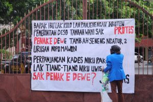 Tak berhenti disitu, massa juga memasang banner besar di pintu gerbang Pemkab Kediri.