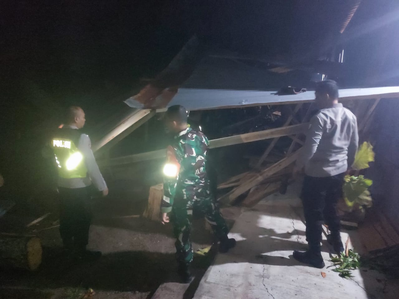 Menindaklanjuti laporan masyarakat, anggota Polsek Karanganyar bersama Kapolsek Iptu Supriyanto, S.H., langsung mendatangi lokasi kejadian. Petugas melakukan evakuasi pohon tumbang yang menutupi jalan serta membantu warga membersihkan material reruntuhan bangunan.
