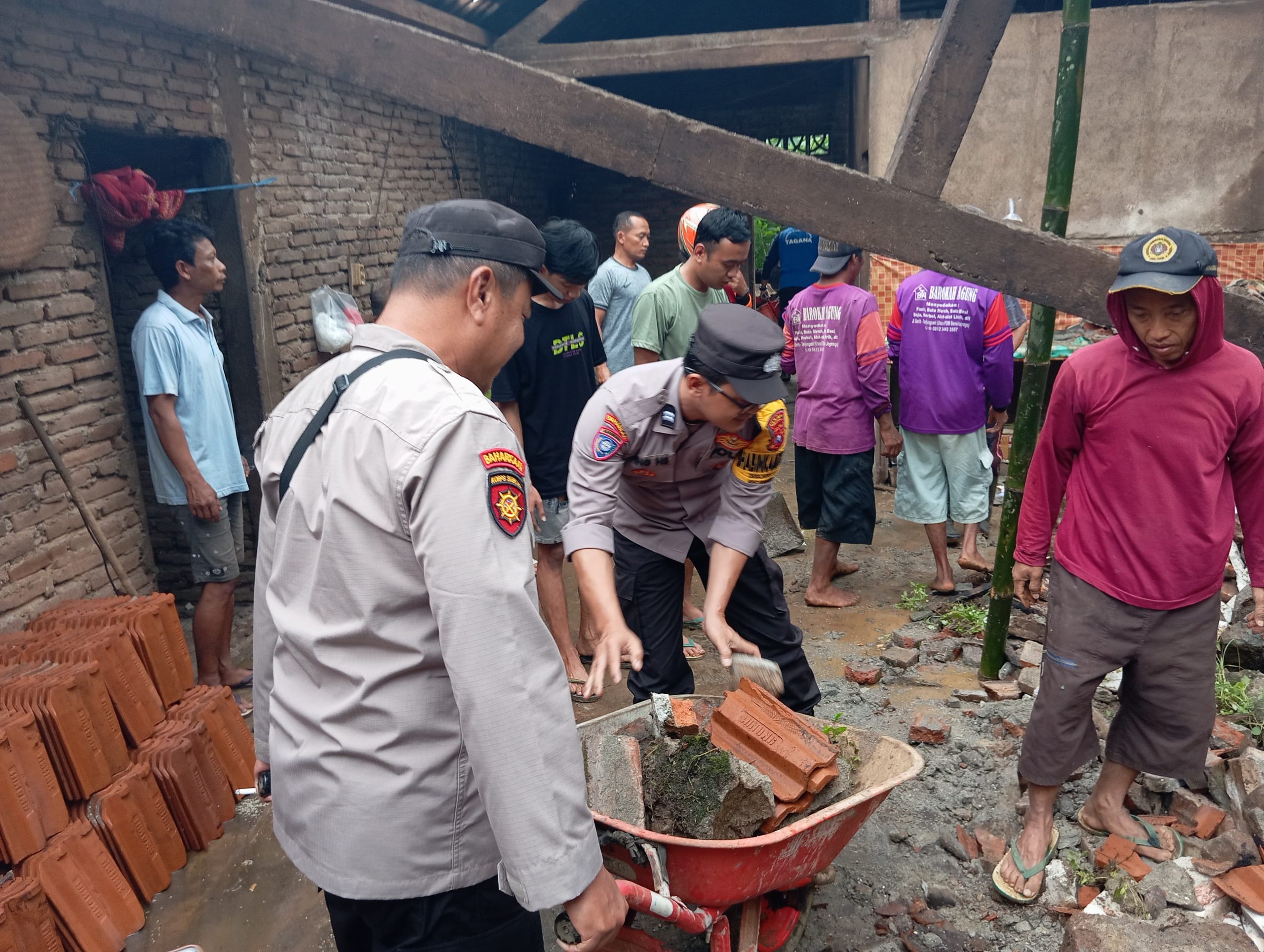 Kapolsek Jogorogo Iptu Sugiyanto, S.H., bersama anggota Polsek dan relawan serta warga setempat segera melakukan evakuasi dan pembersihan rumah dapur milik Agung P (46) di Dusun Duren, Desa Jaten, Kecamatan Jogorogo, Kabupaten Ngawi, yang roboh akibat longsor.