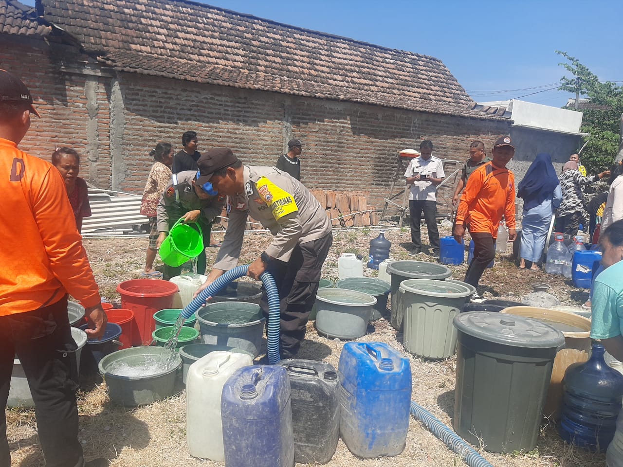 Ketika musim kemarau tiba, air bersih sulit untuk didapatkan. Polsek Pitu Polres Ngawi Polda Jatim bekerjasama dengan Badan Penanggulangan Bencana Daerah (BPBD) mendistribusikan air bersih untuk masyarakat yang terdampak kekeringan, pada Selasa (12/09/23)