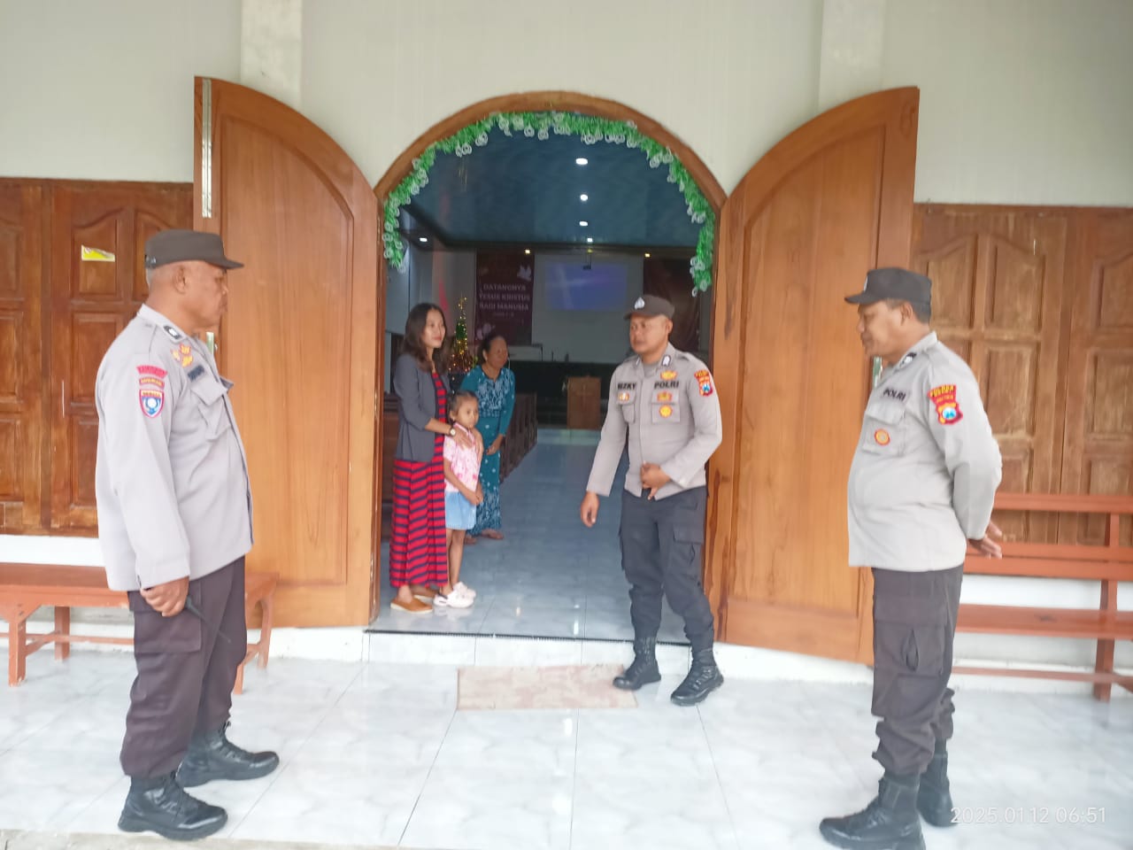 Ngawi – Pilarbangsa.co.id. Pengamanan ibadah rutin umat Nasrani/Kristiani di Desa Sidokerto dan Desa Danguk yang dilakukan oleh Polsek Karangjati Polres Ngawi Polda Jatim, dengan masing-masing jemaah gereja sekitar 30 orang berlangsung aman dan lancar, pada Minggu pagi (12/1/2025).