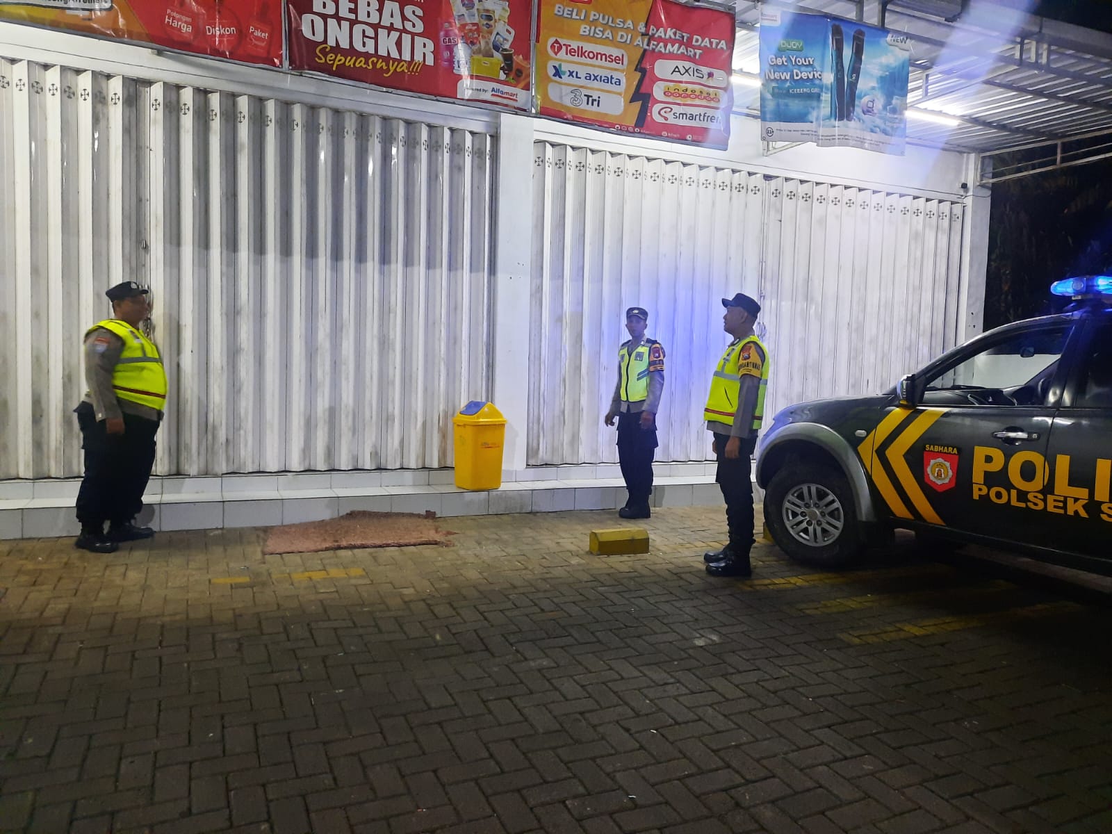 Adapun personel yang terlibat dalam patroli tersebut adalah Aiptu Eko H., Aiptu Kamari, Bripka Rudi, dan Bripka Budi S. Mereka menyisir sejumlah lokasi strategis di wilayah Kecamatan Sine, antara lain Toko Bee Mart, Alfa Mart Sine, Bank BRI Unit Sine, dan Toko Mitra Baru.