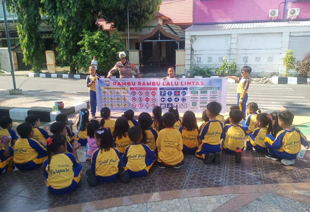 Parepare, Pilarbangsa.co.id. Dalam upaya menciptakan generasi yang lebih sadar dan bertanggung jawab dalam berlalu lintas, Sat Lantas Polres Parepare menggelar kegiatan Outing Class yang diikuti oleh siswa-siswi TK Katolik Parepare pada Jumat, 4 Oktober 2024. Kegiatan ini bertujuan mengenalkan rambu-rambu lalu lintas dan penggunaan zebra cross sejak dini, mengingat anak-anak adalah kelompok yang paling rentan di jalan raya.