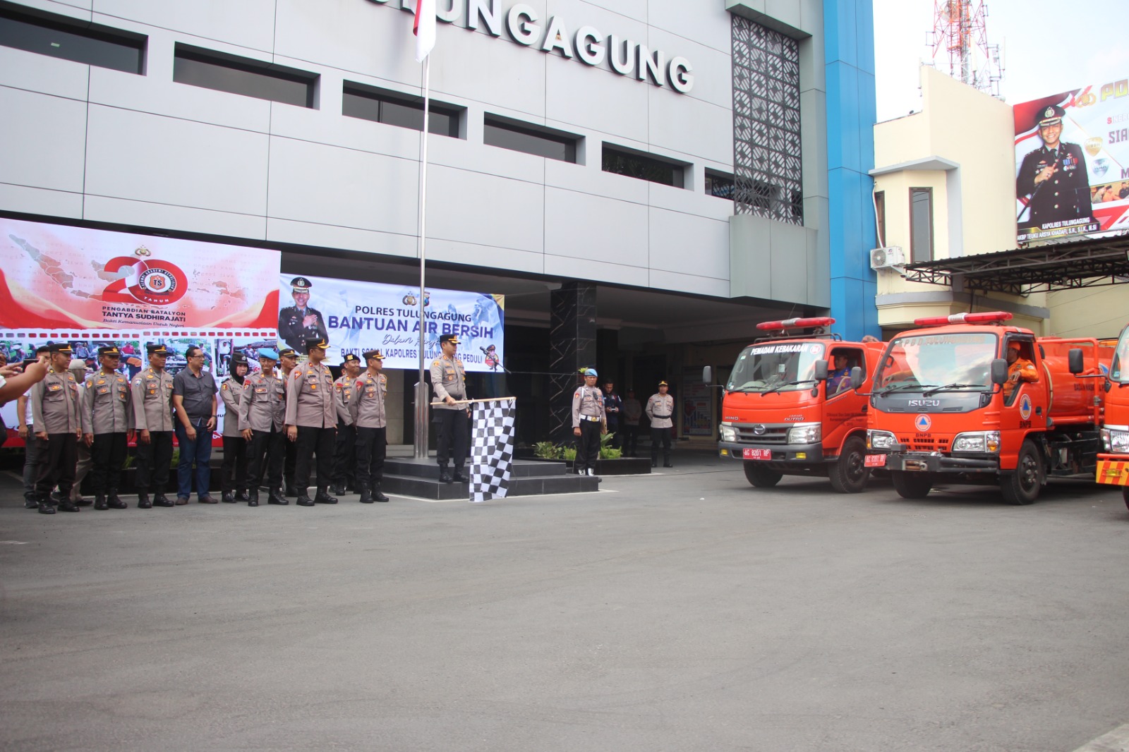 Pengiriman bantuan air bersih itu diberangkatkan dari halaman Mapolres Tulungagung, Rabu (25/10/2023).