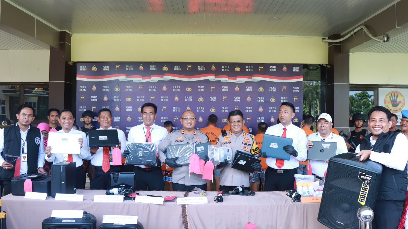 “Sejumlah barang bukti berhasil diamankan oleh pihak kepolisian, termasuk sepeda motor, laptop, tablet, seperangkat komputer, speaker aktif berbagai ukuran, dan mesin ketik,“ terang Kapolres.
