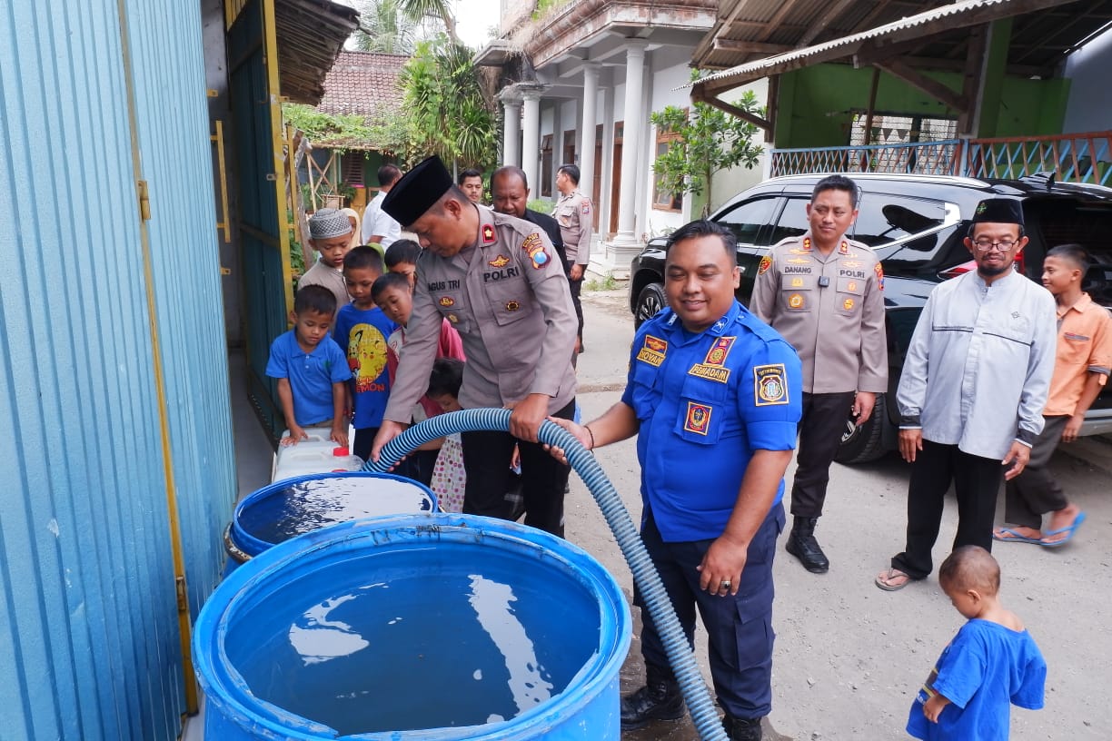 Pantauan di lokasi, AKBP Danang beserta Kapolsek, PJU dan Bhabinkamtibmas tampak di lokasi saat penyaluran air bersih kepada warga yang membutuhkan.
