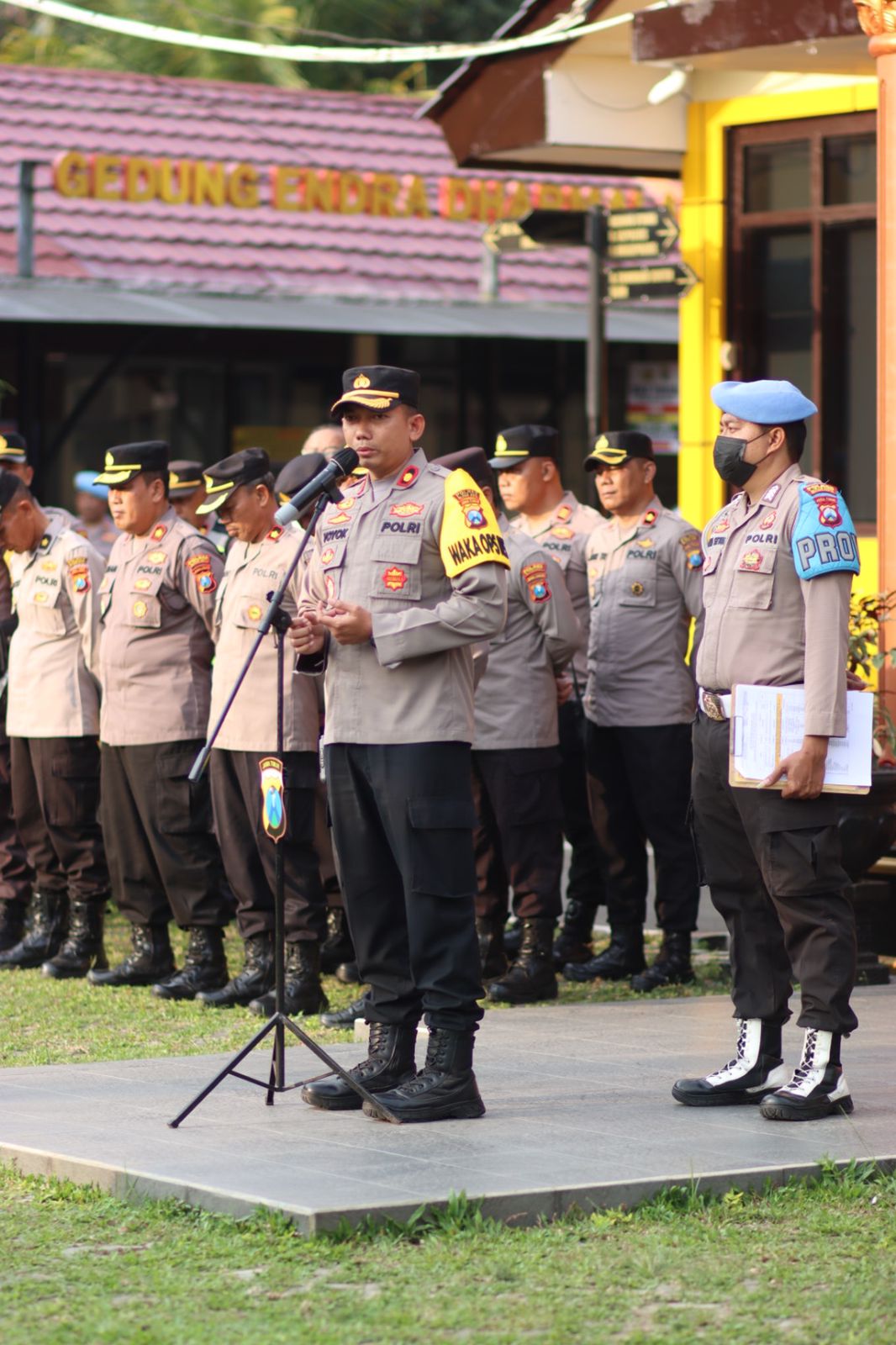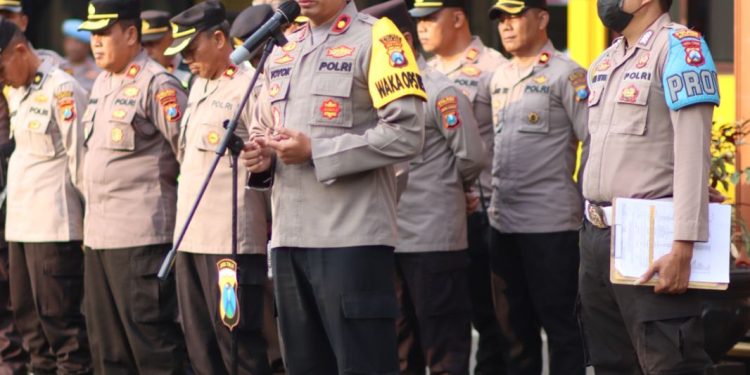Dalam apel tersebut, Kapolres Blitar Kota AKBP Argowiyono melalui Wakapolres Blitar Kota Kompol Yoyok Dwi Purnomo memberikan pengarahan kepada seluruh personel untuk meningkatkan kewaspadaan dan menjaga stabilitas keamanan di wilayah Hukum Polres Blitar Kota