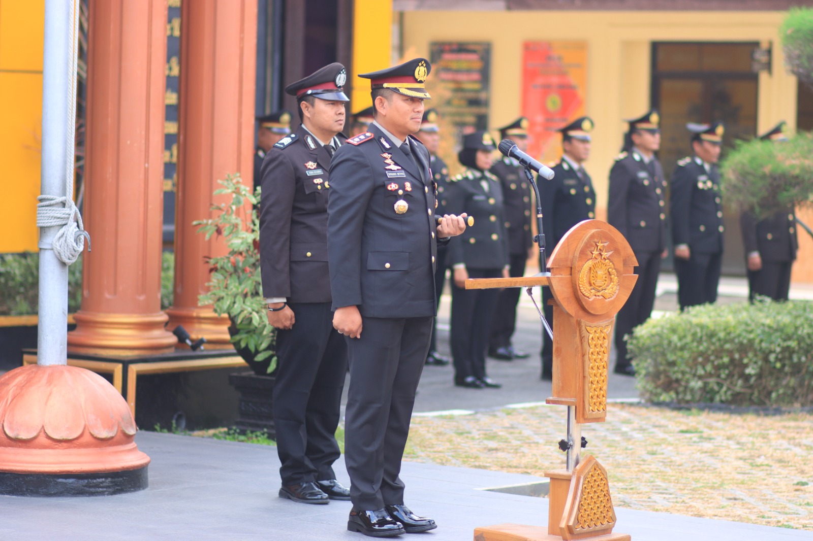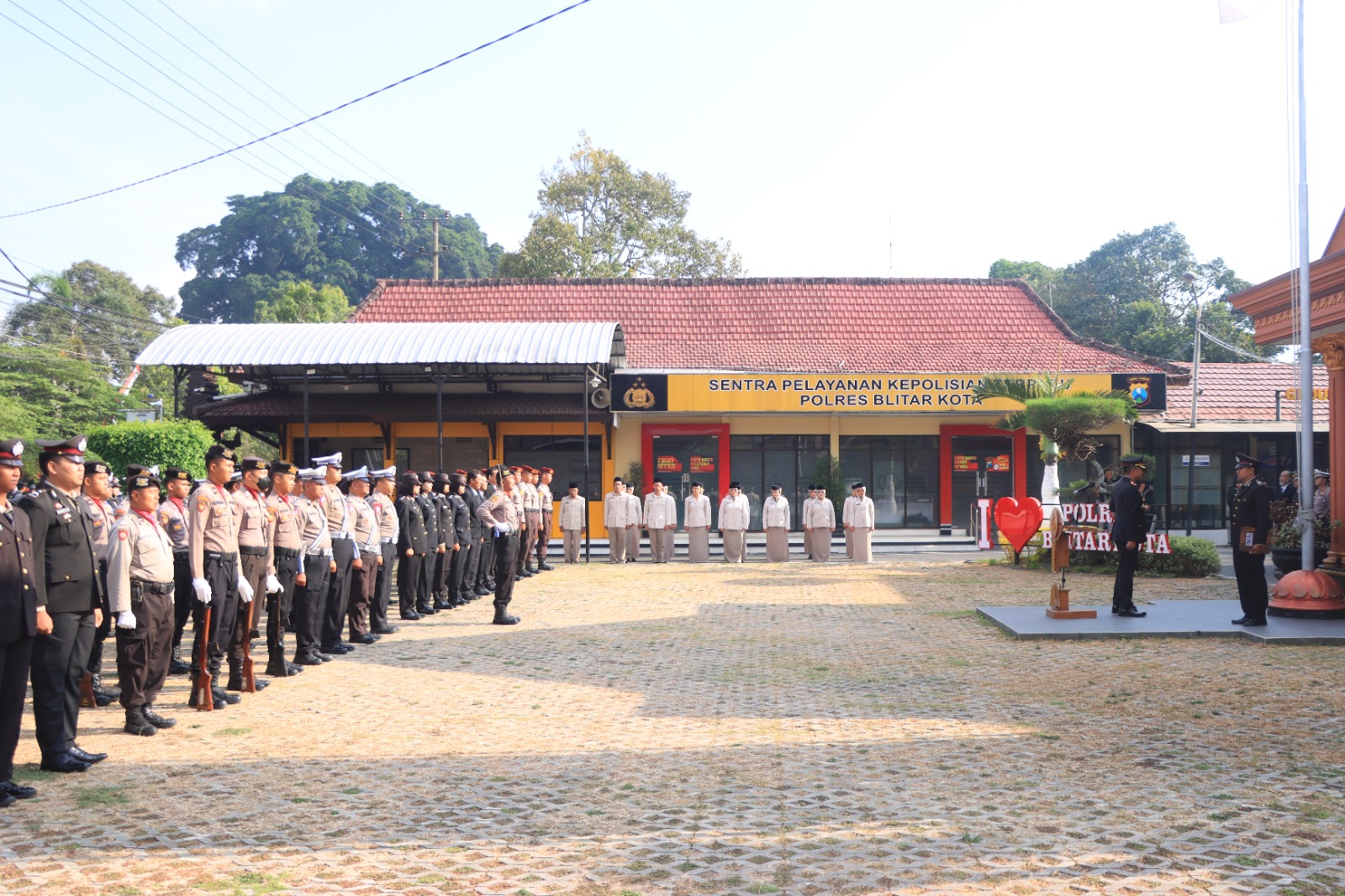Upacara tersebut dipimpin oleh Kapolres Blitar Kota AKBP Danang Setiyo P.S S.H S.I.K yang diikuti pejabat utama, para Kapolsek, gabungan staf dan personel Polres Blitar Kota, perwakilan anggota polsek jajaran serta ASN.