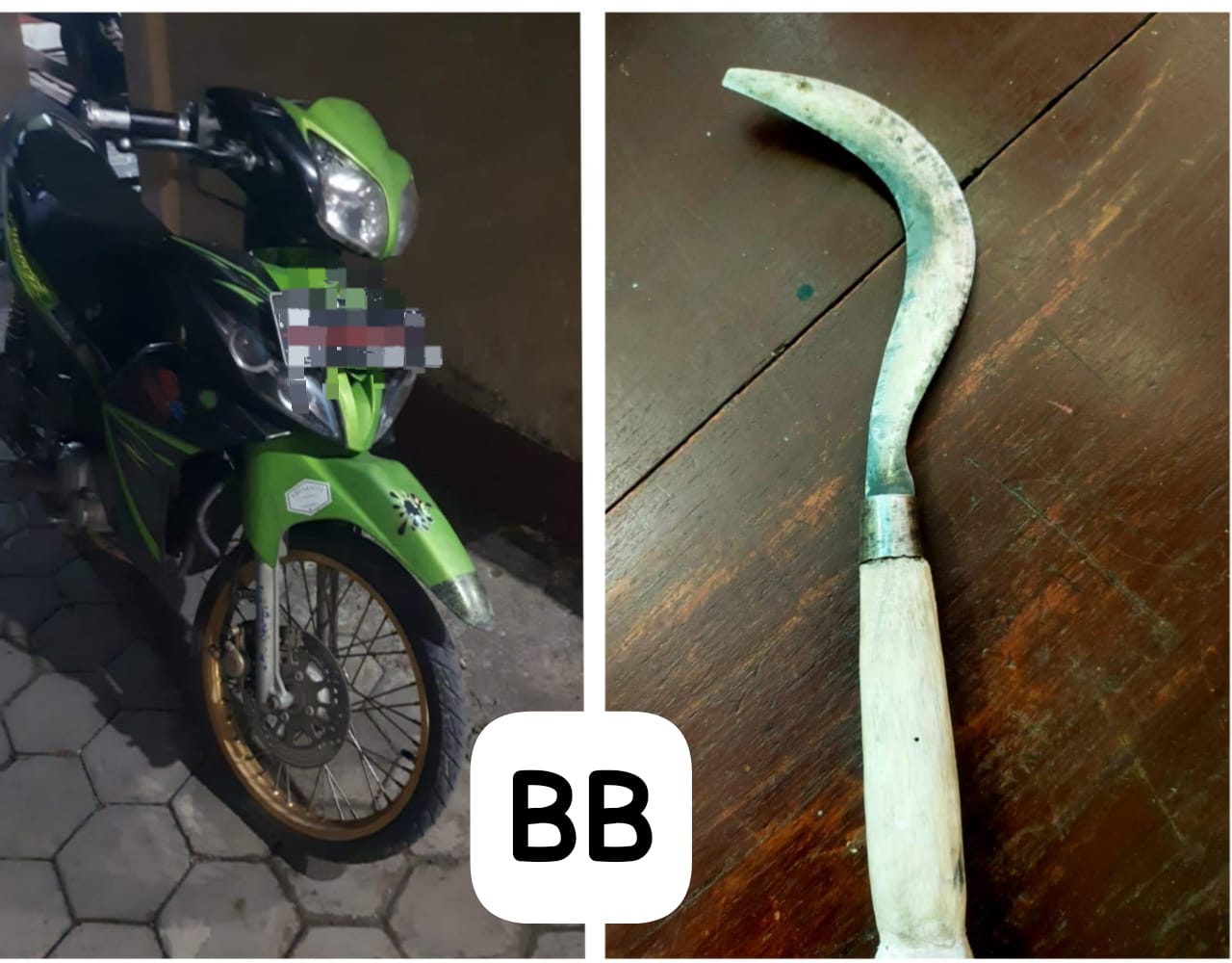 “Tersangka yang berinisial AF (21 tahun), warga Desa Dadapan, Kecamatan Ngronggot, Nganjuk, kini telah diamankan oleh pihak kepolisian. Barang bukti yang berhasil disita antara lain adalah sebuah sabit yang diduga digunakan dalam aksi penganiayaan, serta sepeda motor merk Yamaha Jupiter Z berwarna hijau,” ujar AKBP Siswantoro.