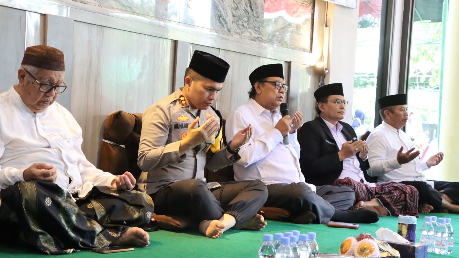 Kapolres Nganjuk AKBP Muhammad, S.H., S.I.K., M.Si., didampingi Wakapolres Nganjuk, Pejabat Utama (PJU) serta Kapolsek jajara menggelar do’a bersama lintas agama dalam rangka menyambut Hari Bhayangkara ke-78 tahun 2024, Selasa (25/6/2024).