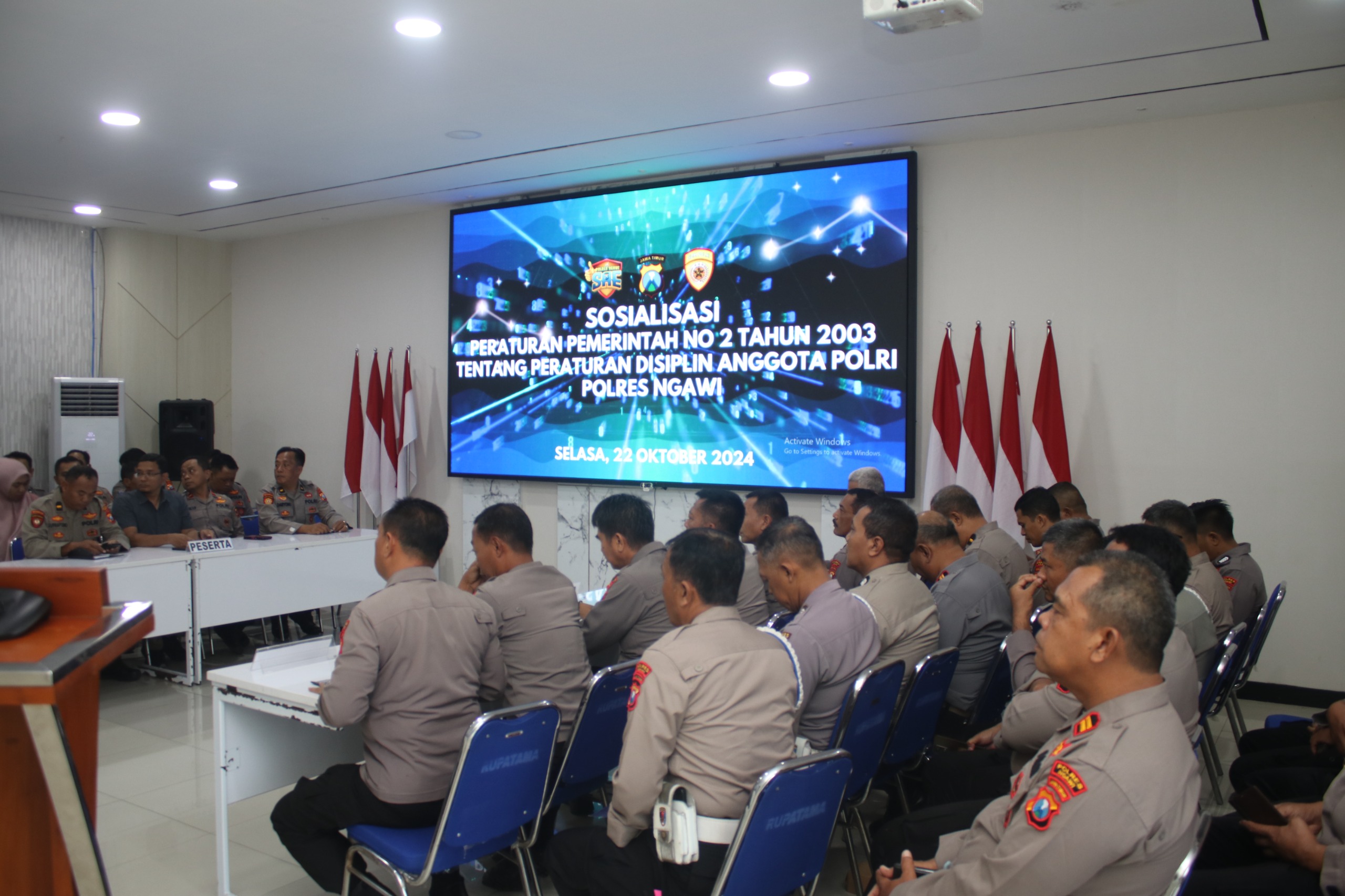 Demi lebih menegakkan disiplin anggota Polri, maka Polres Ngawi melaksanakan sosialisasi Peraturan Pemerintah No 2 Tahun 2003 tentang Peraturan Disiplin Anggota Polri, di ruang guyup Polres Ngawi, pada Selasa (22/10/2024)