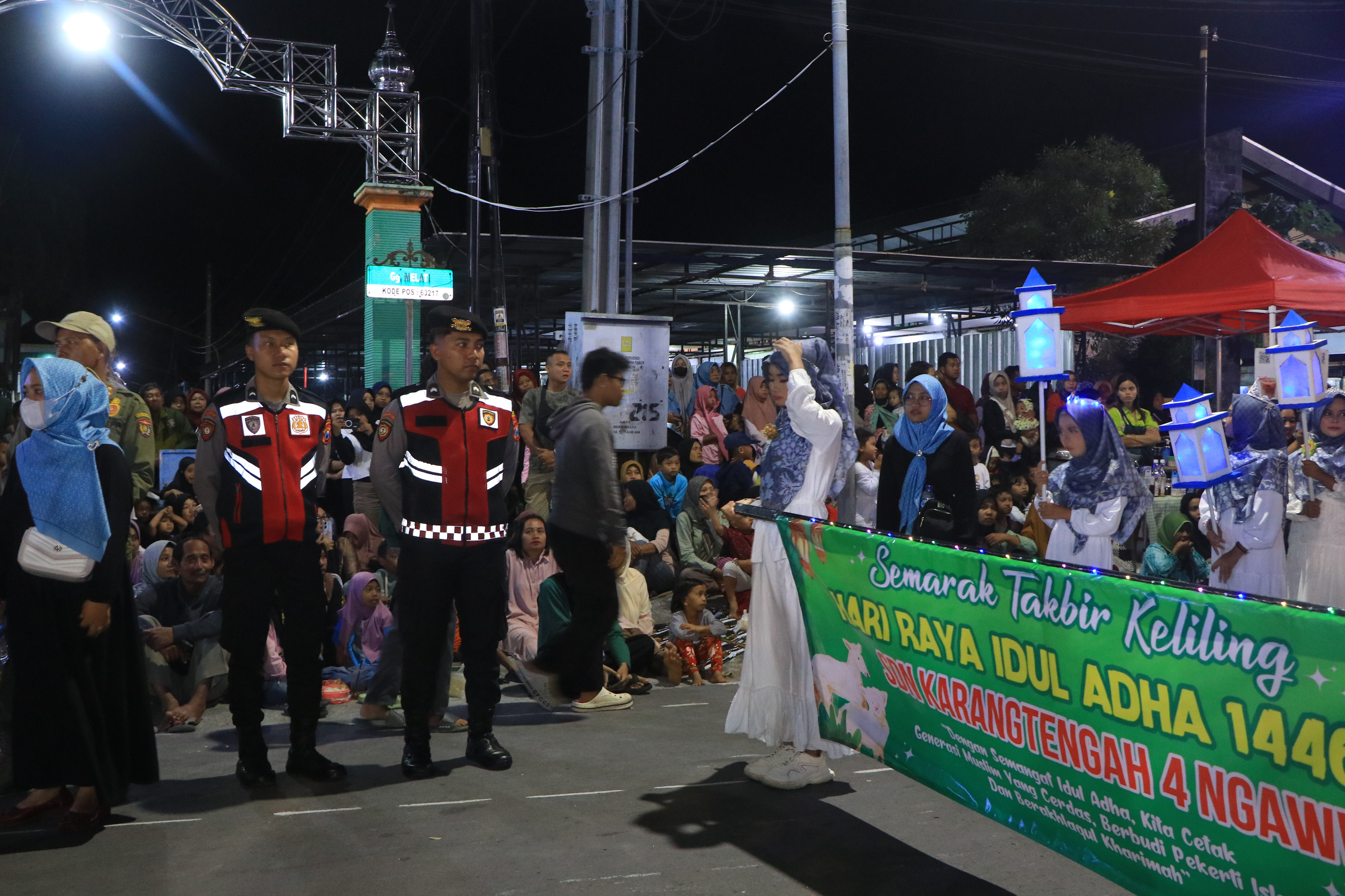 “Kami telah menurunkan ratusan personel di berbagai titik strategis, termasuk pusat kota dan jalur utama. Kegiatan takbir keliling malam ini berlangsung dalam suasana aman, tertib, dan lancar,” ujar AKBP Charles T