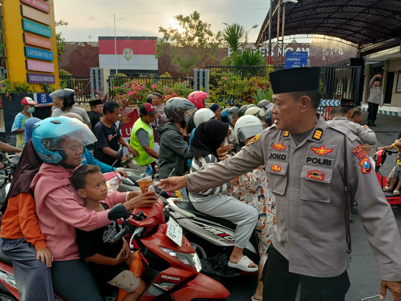 “Makasih pak polisi,” kata salah satu penerima takjil, dengan rasa syukur (hmsresngw-d*)