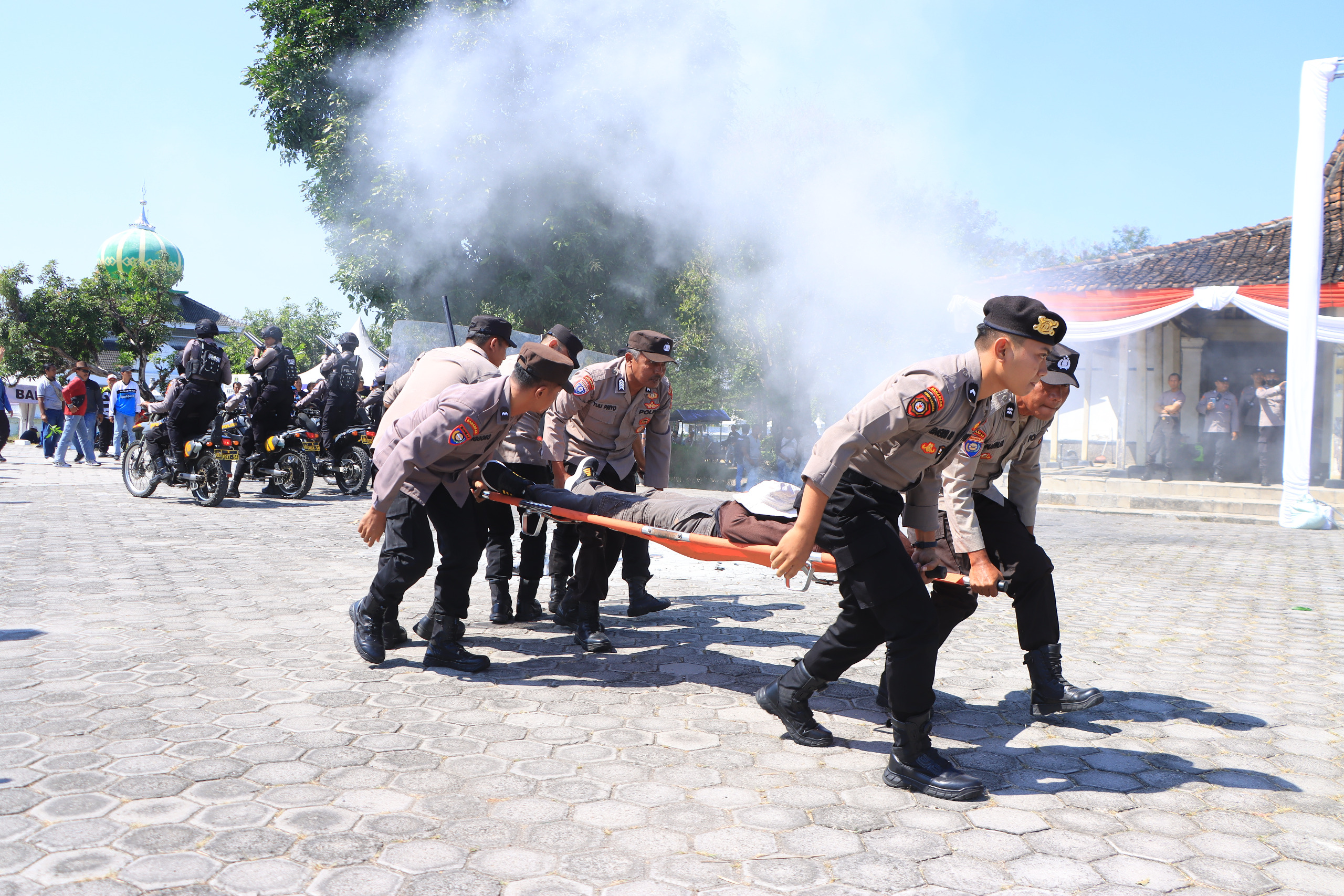 Dalam simulasi pengamanan Pilkada 2024 ini, menunjukkan saat situasi proses Pilkada berlangsung.