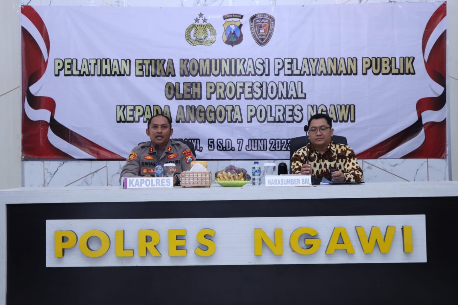 Sebagai informasi, Polres Ngawi selalu meningkat pelayanan publik kepada masyarakat salah satunya dengan memberikan pelatihan etika komunikasi pelayanan publik, sebagai program prioritas peningkatan kualitas pelayanan publik Polri dan pelaksanaan pembangunan zona integritas (ZI) menuju wilayah bebas korupsi (wbk) dan wilayah birokrasi bersih melayani