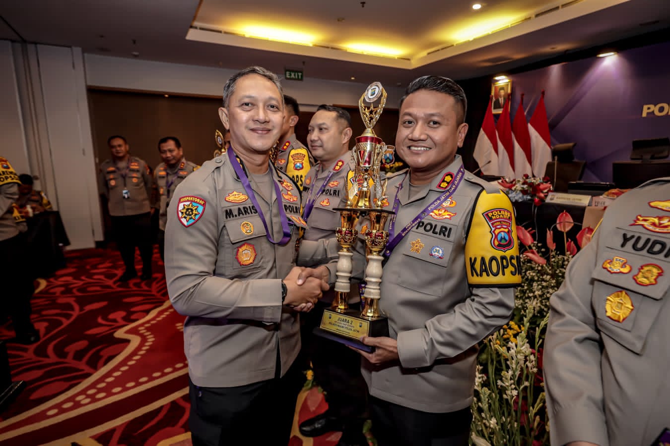 Kemarin sore, pada Selasa (12/9/2023) ketika Polresta Kediri menjadi tuan rumah kegiatan Anev (analisa dan evaluasi) Sitkamtibmas Polda Jatim bulan Agustus 2023, Piala penghargaan sebagai juara 2 diterima oleh Kapolres Ngawi AKBP Argowiyono, S.H., S.I.K., M.Si.