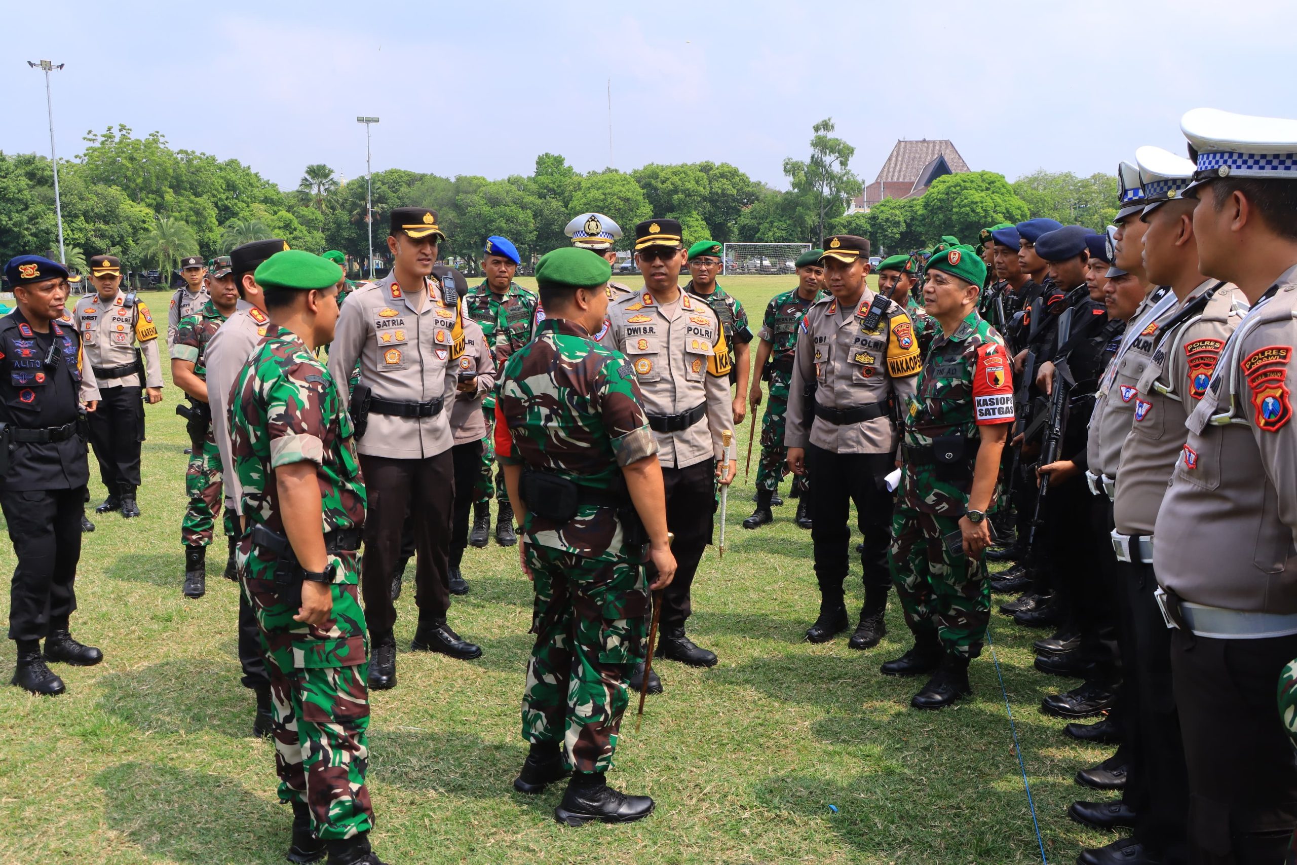 Setelah kemarin (Jumat /1/11/2024) rapat koordinasi di Pemda Kab. Ngawi, hari ini Polri bersama TNI melaksanakan apel gelar pasukan pengamanan VVIP dalam rangka kunjungan kerja Wakil Presiden RI Gibran Rakabuming, yang dipimpin Komandan Korem (Danrem) 081/Dhirot Saha Jaya (DSJ) Kolonel Infanteri Rama Pratama, M.Si (HAN), di alun-alun Merdeka Ngawi, pada Sabtu (2/11/2024).