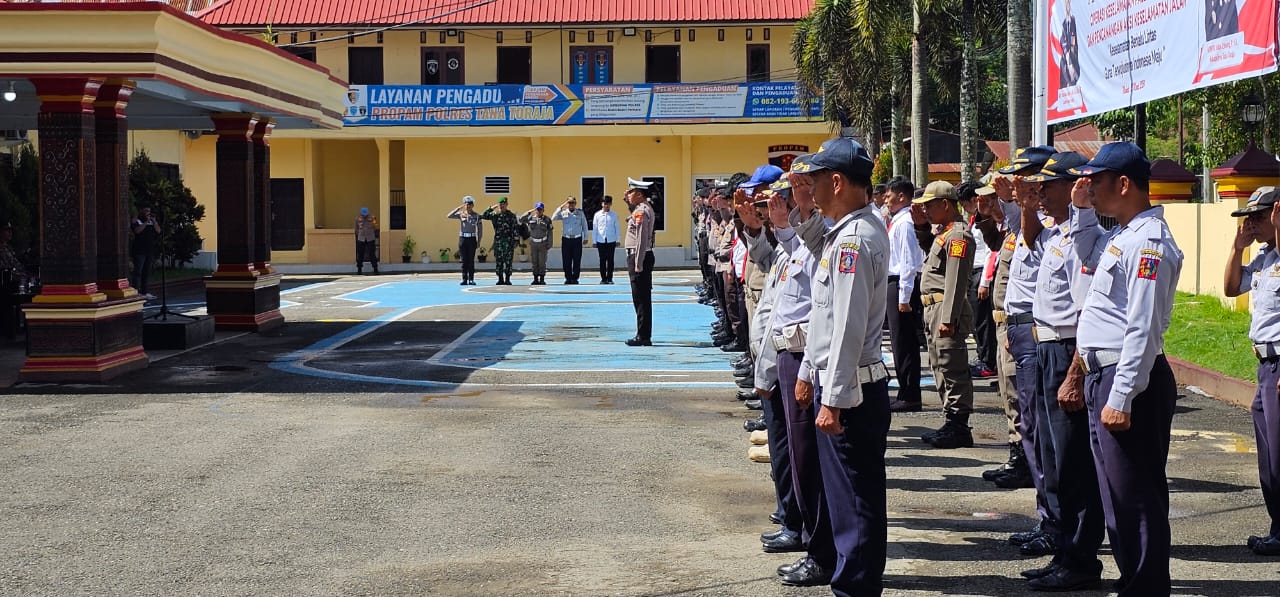 Kepala Kepolisian Resor (Kapolres) Tana Toraja AKBP Malpa Malacoppo, pimpin apel gelar pasukan operasi keselamatan pallawa 2024 dan pencanangan aksi keselamatan jalan, bertempat di halaman Mapolres Tana Toraja, Sabtu (2/3/24)