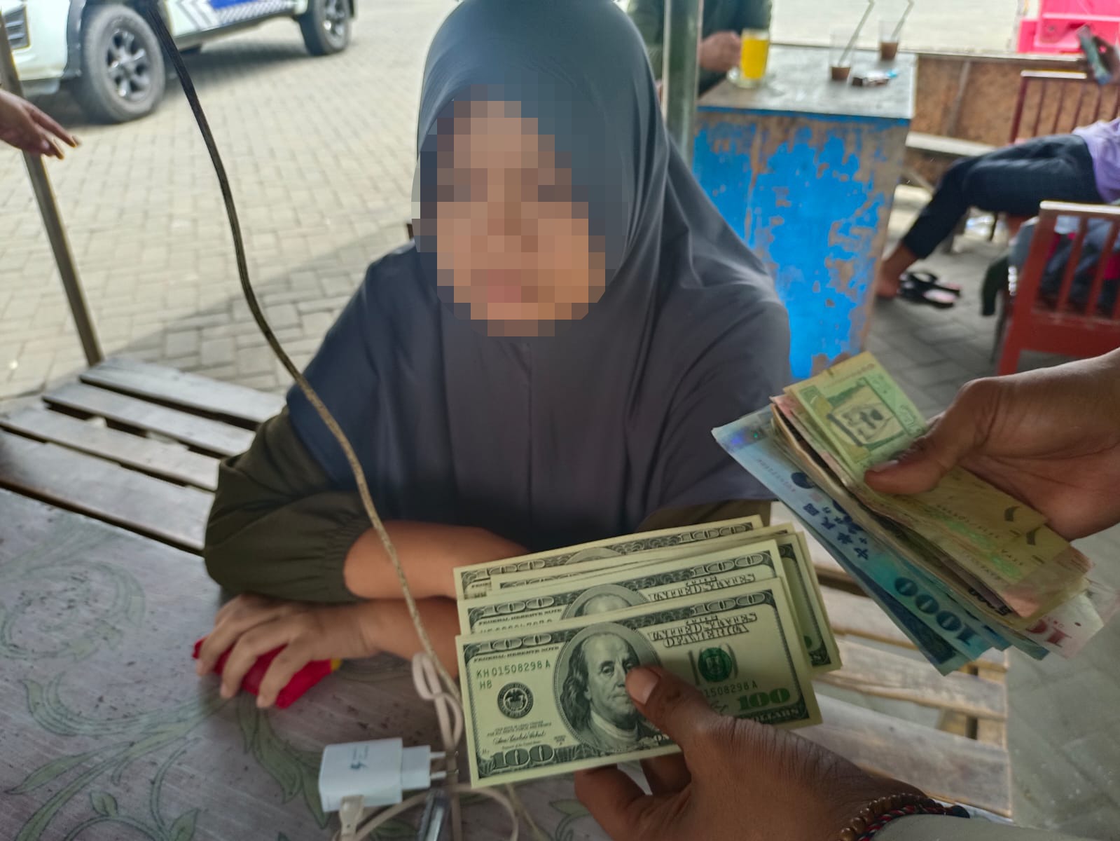 Dari hasil pemeriksaan tersebut, petugas mengamankan sejumlah barang bukti diantaranya sebuah buah tas warna biru, sejumlah bendel uang tunai rupiah, puluhan lembar dolar Amerika dan mata uang asing serta sebuah kotak berisi dua buah cincin emas.