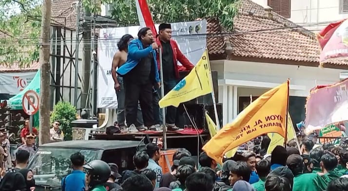Aksi damai dilakukan berlangsung di depan DPRD Kabupaten Tulungagung, Senin (26/08/2024).