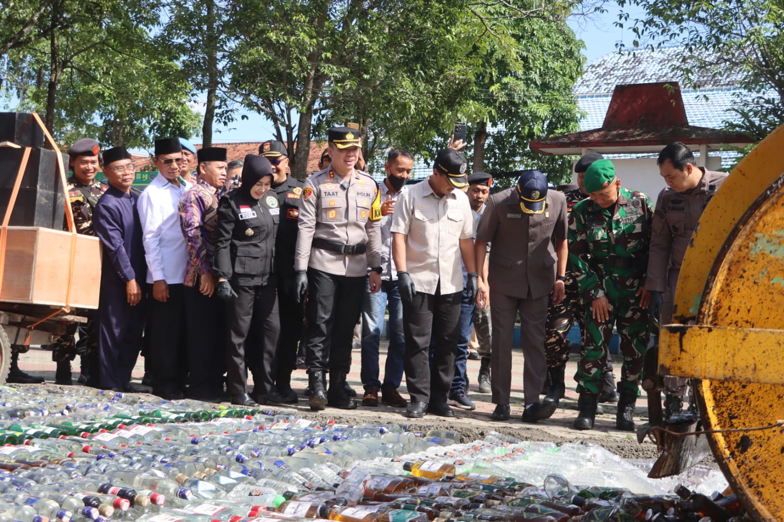 “Ada 3512 botol miras berbagai merek dan jenis kita musnahkan. Ini dari penindakan yang dilakukan oleh jajaran Polsek dan Polres”, kata AKBP Taat.