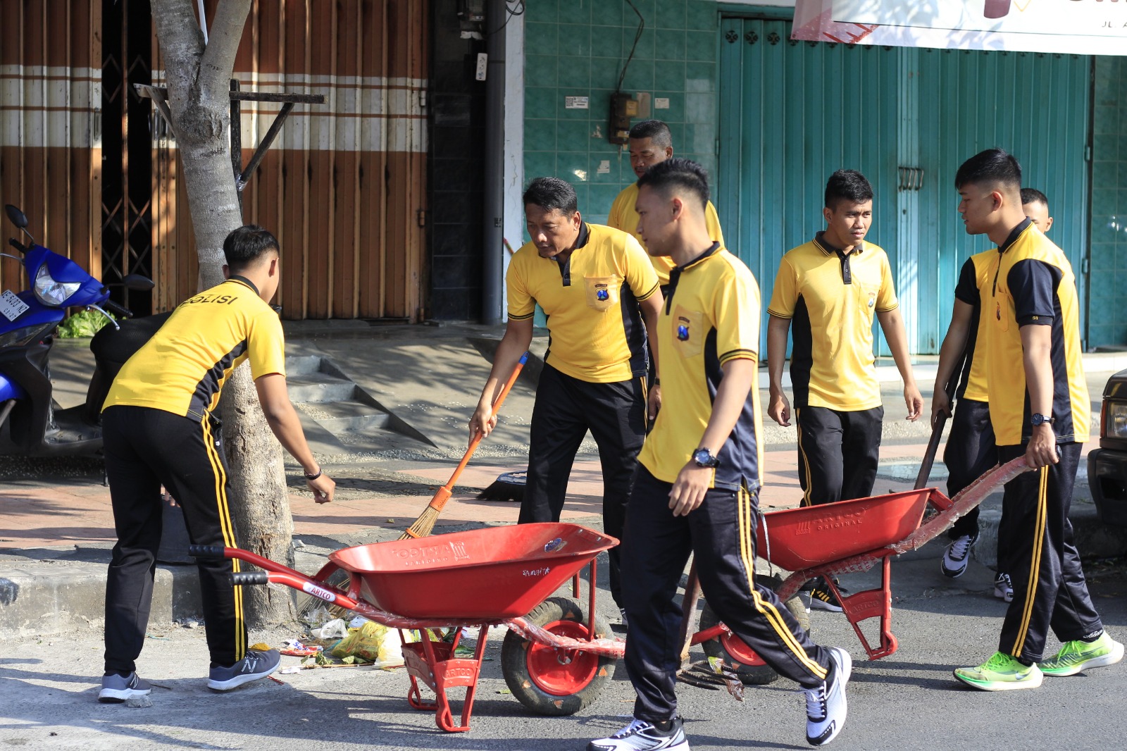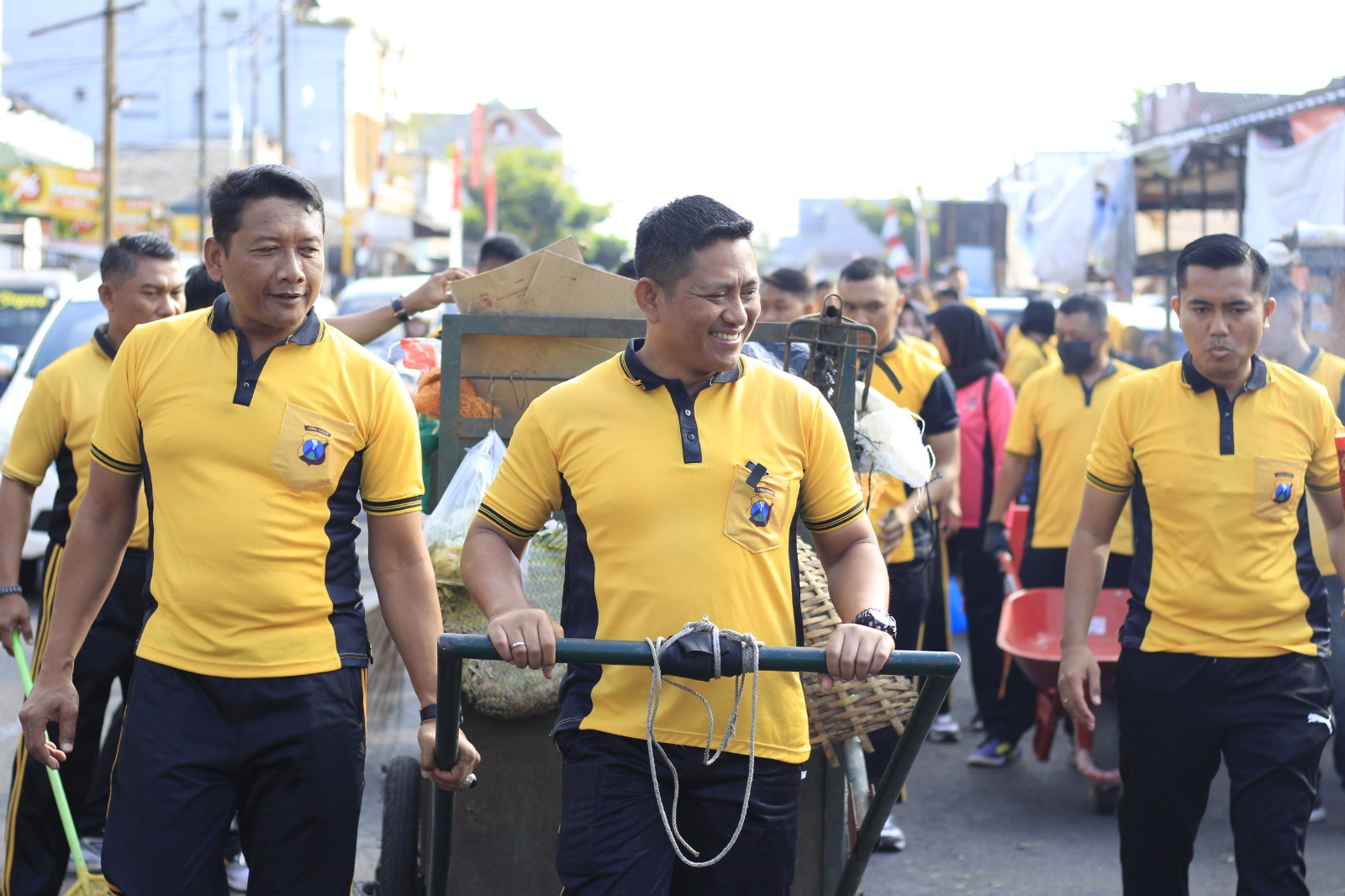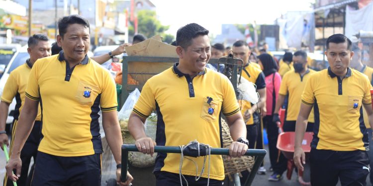 Polri Peduli Lingkungan, Polres Blitar Kota Bersih-Bersih Sampah di Pasar Templek