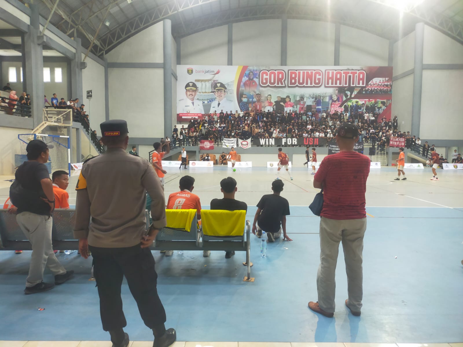 Ngawi – Pilarbangsa.co.id. Polsek Geneng Polres Ngawi Polda Jatim mengamankan jalannya Turnamen Forsnawi Futsal Competition 2025 antar pelajar tingkat SMA/SMK dan MA se-Kabupaten Ngawi yang berlangsung di GOR Bung Hatta Desa Klitik, Kecamatan Geneng Kab. Ngawi, yang dipimpin oleh Kapolsek Geneng, AKP Hari Sunarto, S.H.