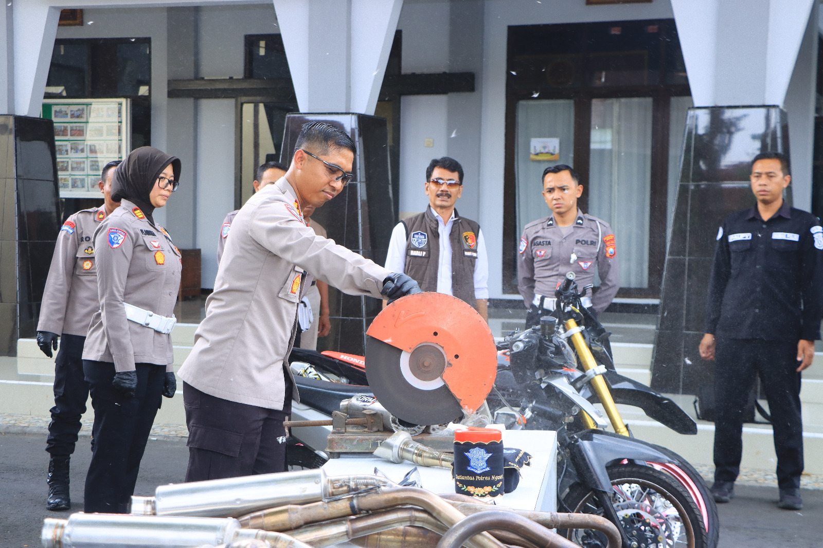 Dalam kesempatan tersebut, Kapolres dan sejumlah Pejabat Utama Polres Ngawi juga memusnahkan knalpot yang tidak sesuai spektek.